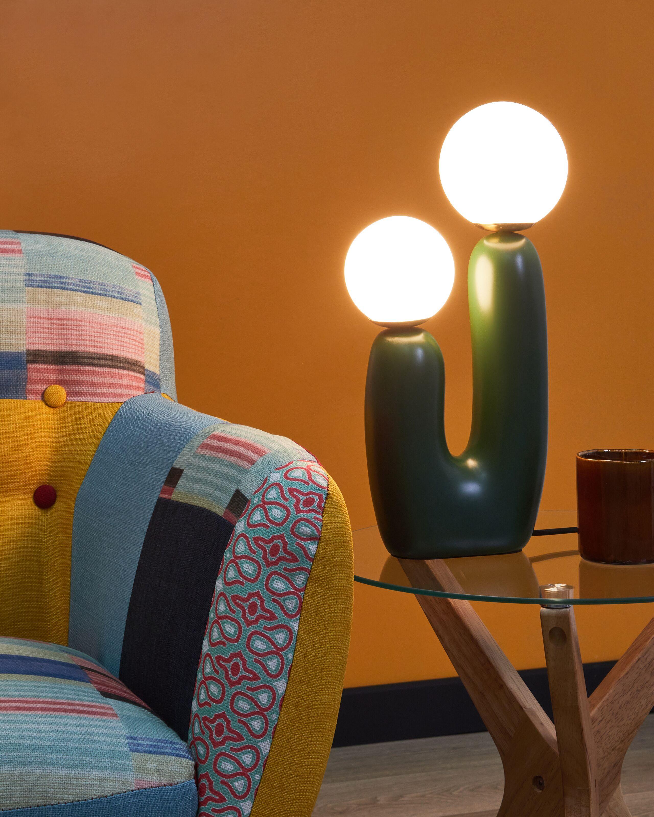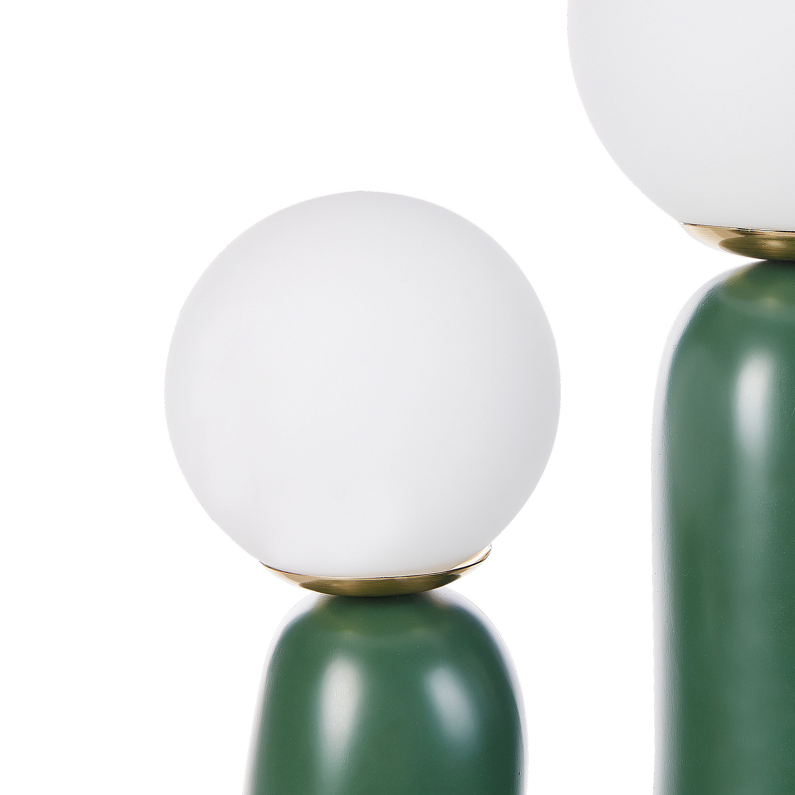 Tischlampe Harz dunkel grün mit Glasschirm 2-flammig 40 cm hoch modern Tulun