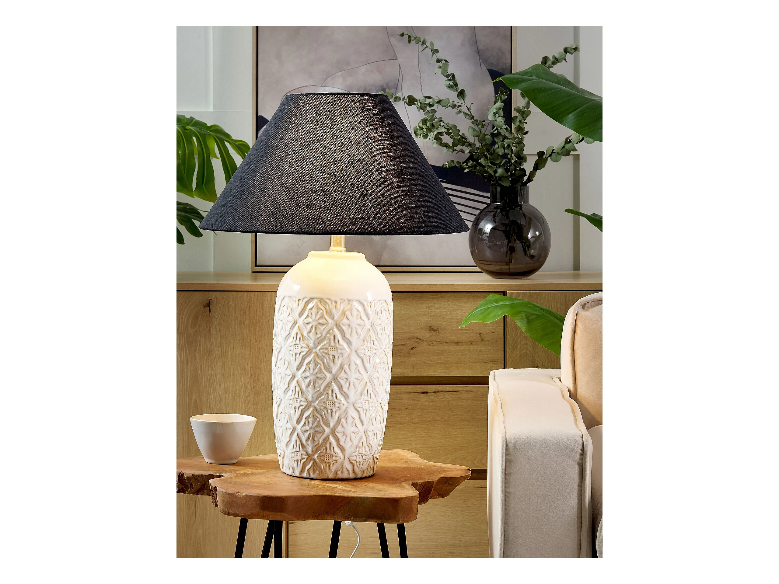 Tischlampe mit Keramiksockel Raumbeleuchtung Schwarz Lampenschirm Beige Telire