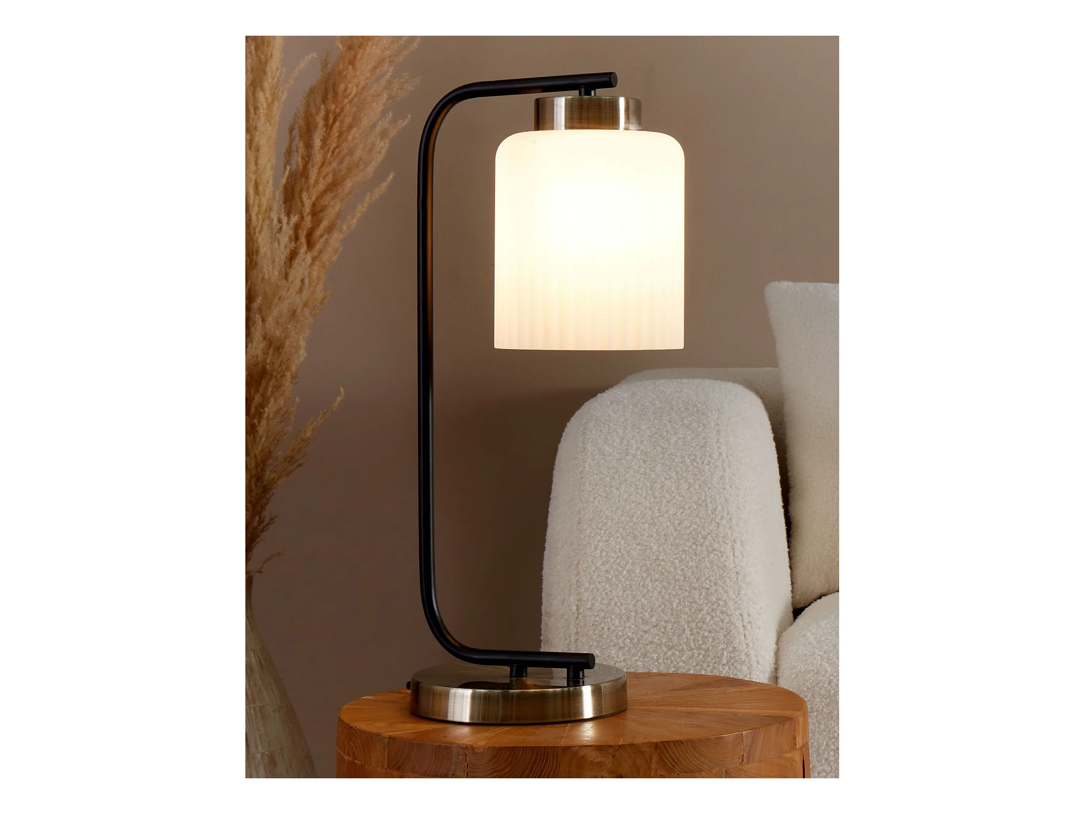 Tischlampe Metall und Glas schwarz / messingfarben / weiß modern elegant Caudelo