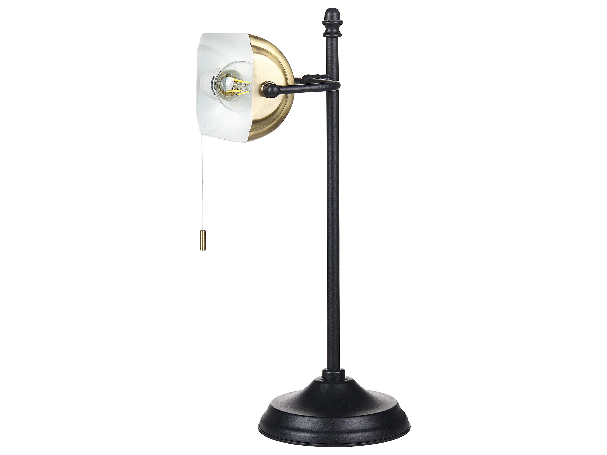 Tischlampe mit verstellbarem Lichtschalter Glasschirm Metallsockel Schwarz/Gold Maraval