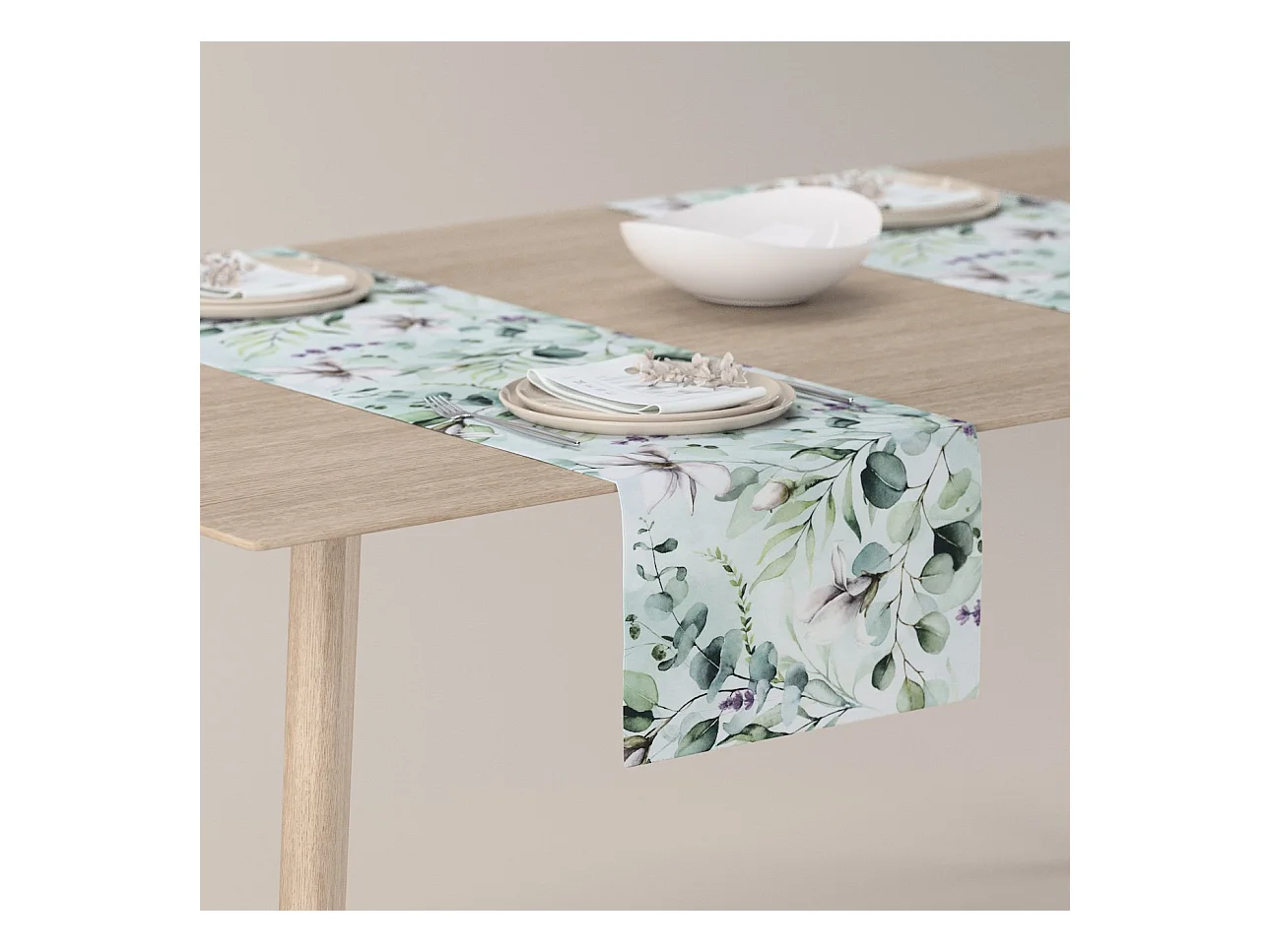 TISCHLÄUFER Flowers, weiß und grün, 40x130 cm
