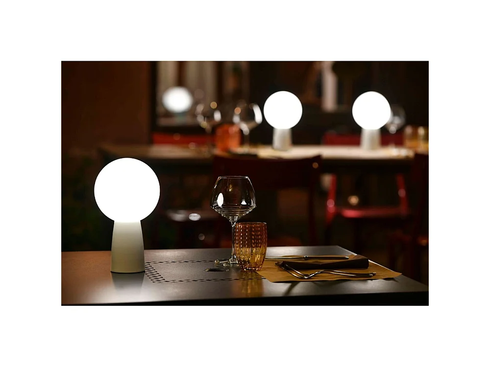 Tischleuchte Olimpia Pro in poliertem Chrom, wiederaufladbar und dimmbar