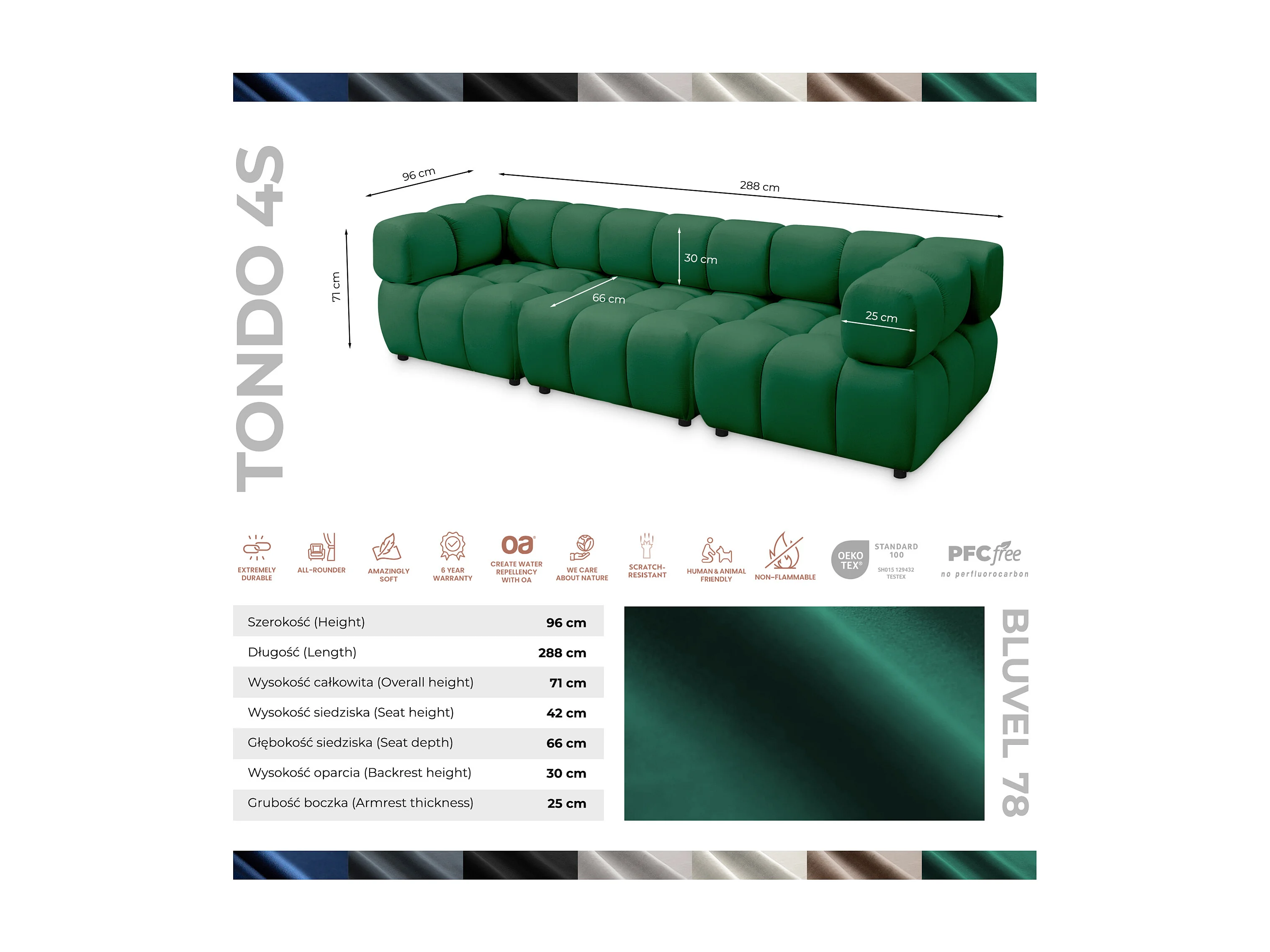 Tondo 4S Design Sofa Modulares Bubble Couch 4-Sitzer Samt Bluvel 78 Grün