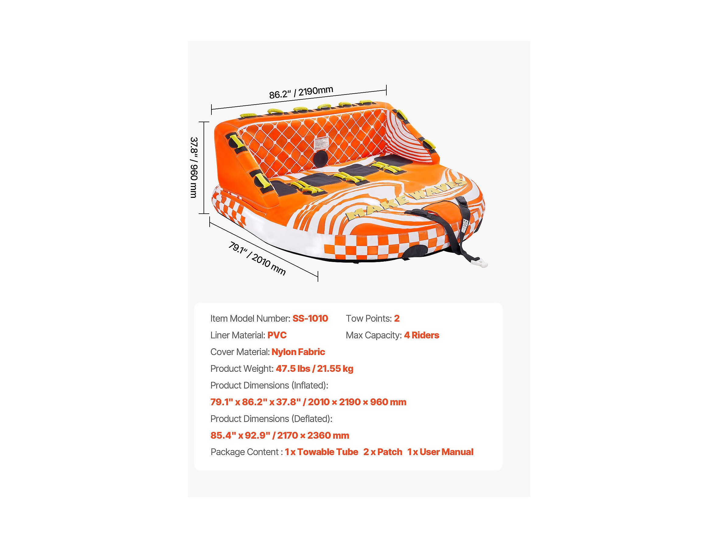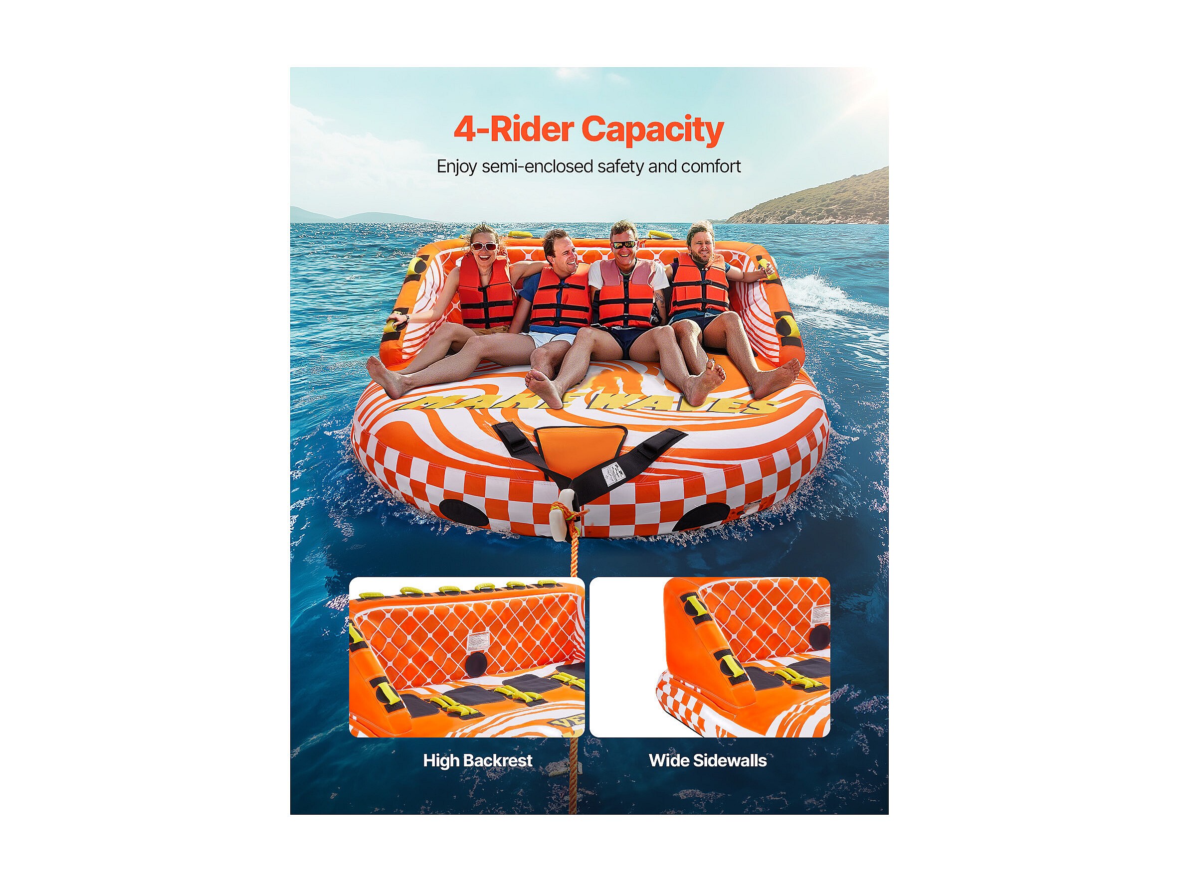 Towable Tube, SucceBuy Towable Tube zum Bootfahren, Aufblasbarer Towable Tube für Wassersport für 1-4 Passagiere