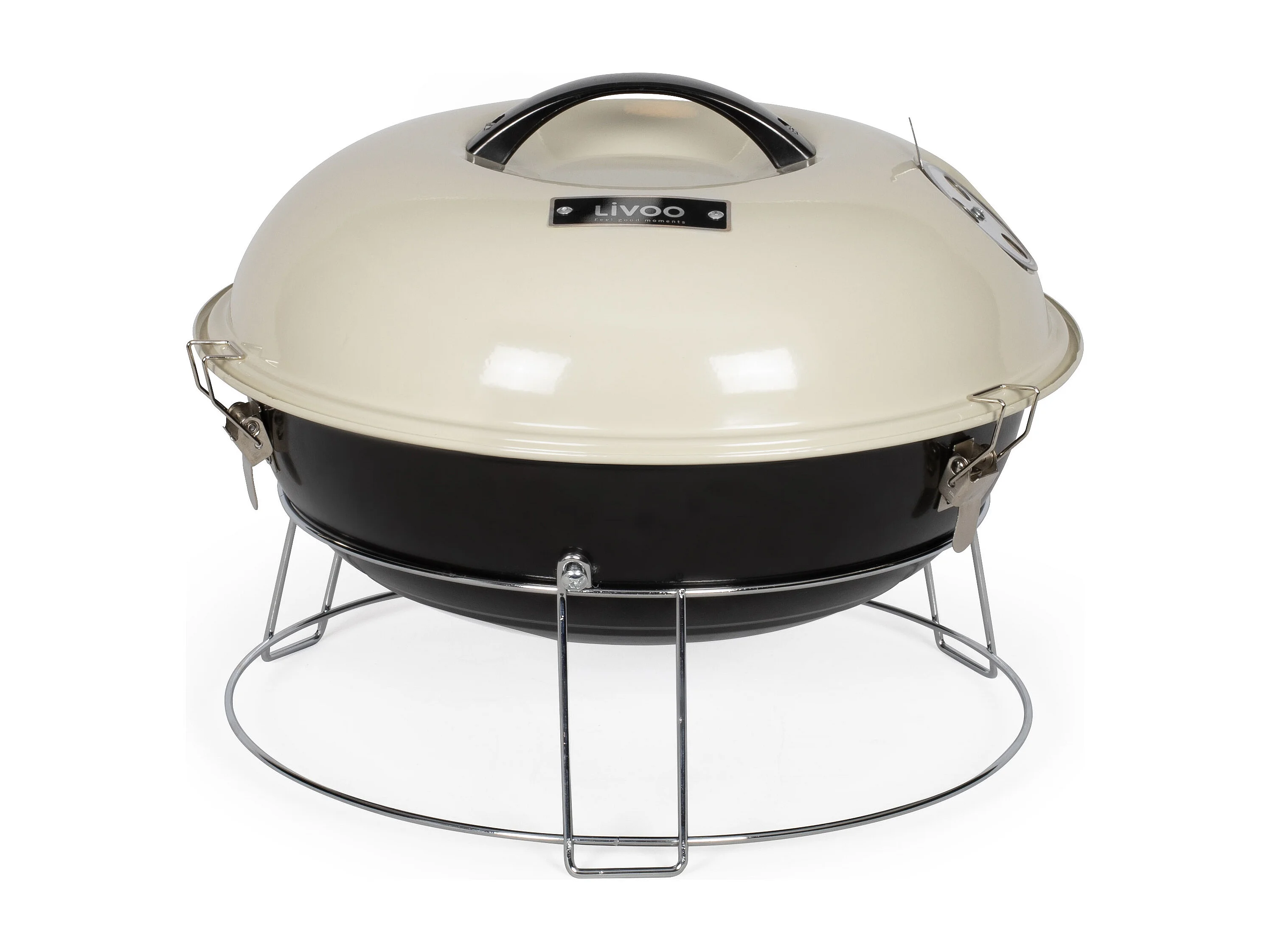 Tragbarer Holzkohlegrill Livoo DOC301 ø34 cm emaillierter Stahl beige mit belüftetem Deckel und Griff