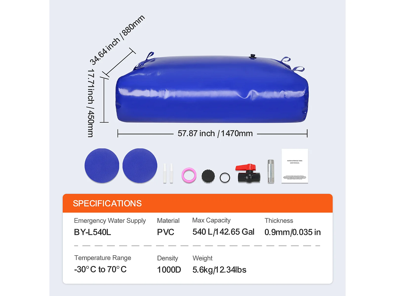 Tragbarer Wassertank SucceBuy 540L, Faltbar aus PVC 1000D, Wassertank für Wohnmobil, Große Kapazität, Tragbar, Brandschutz, Camping