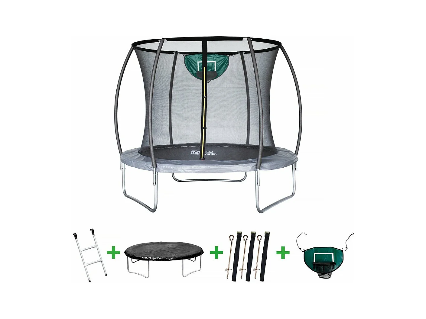 Trampolin Prestige "Jumper" 2,44m mit Innen-Netz und Basketballkorb - Grau
