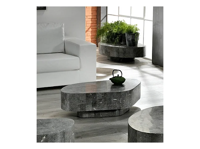 Trapezio – Couchtisch (100 x 52 x 28 h) aus grauem Fossilstein