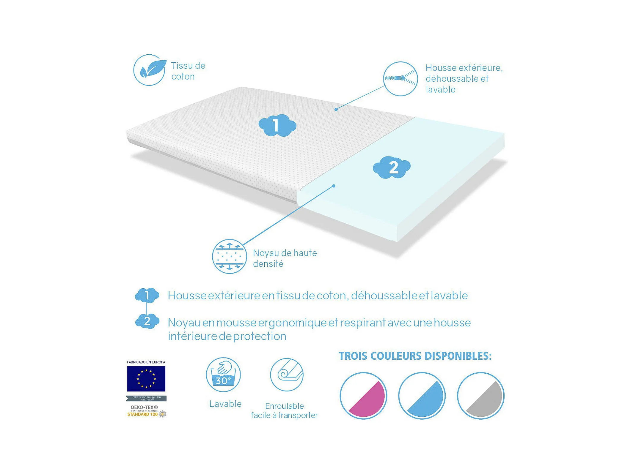 TRAVEL COT Babymatratze 120x60x5 GRAU - Herausnehmbar, waschbar und leicht zu transportieren