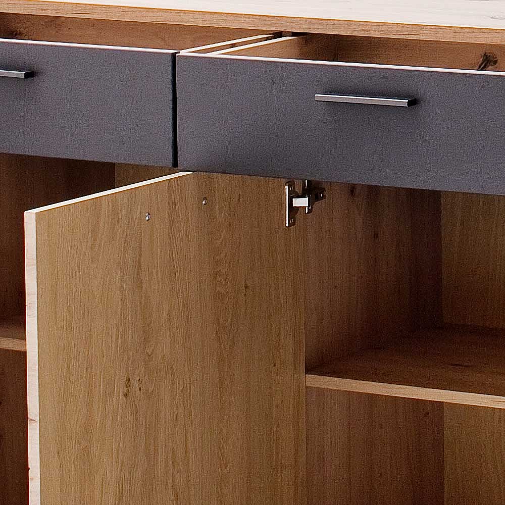 T�ren Sideboard in Eichefarben und Anthrazit 180 cm breit