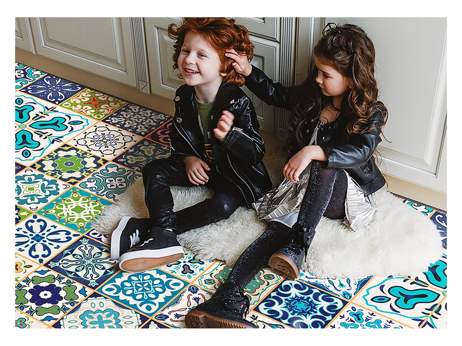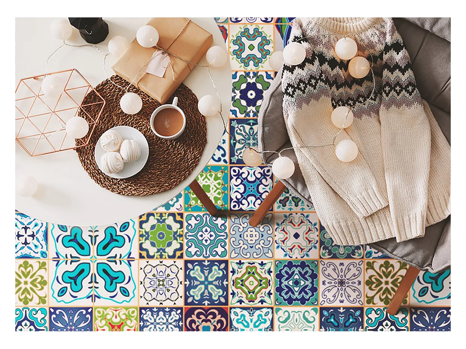 Trendiger universeller Vinyl-Teppich, portugiesisches Muster – 120 cm x 180 cm