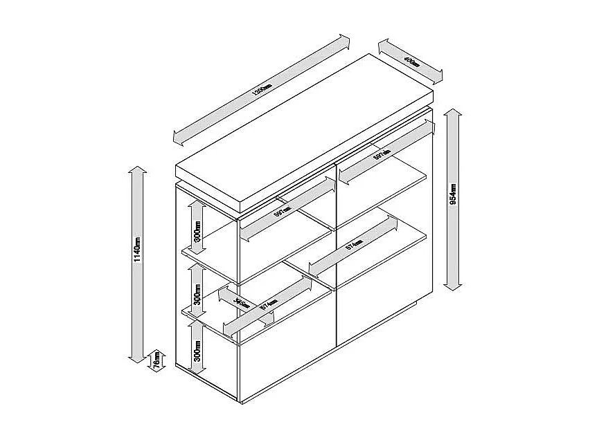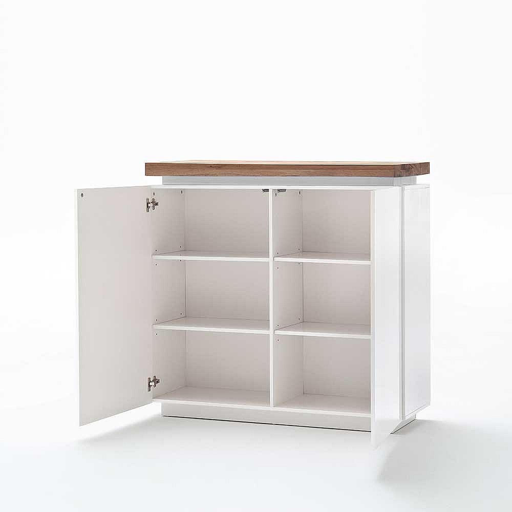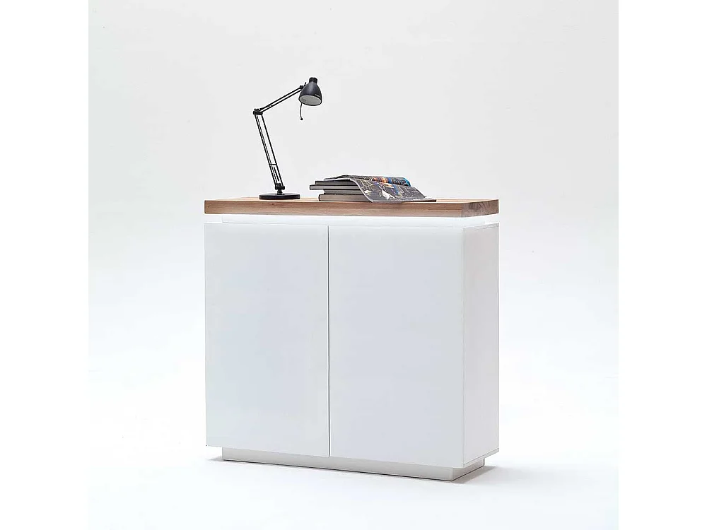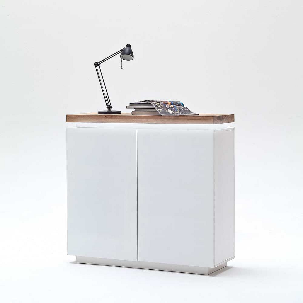 Türenkommode mit LED Beleuchtung Weiß Eiche