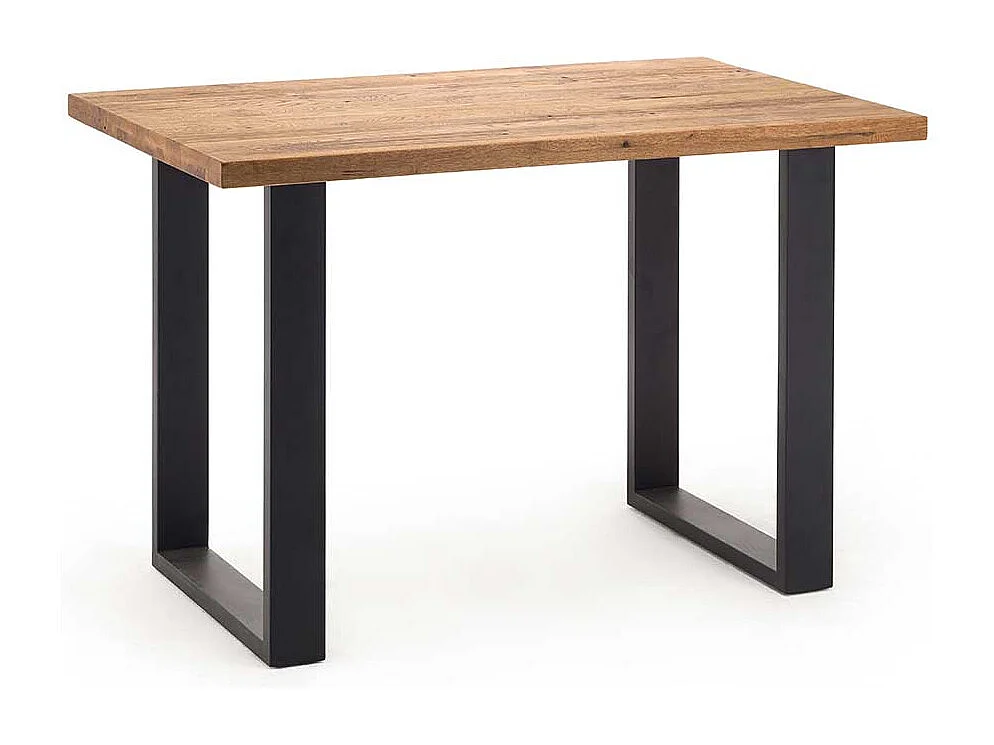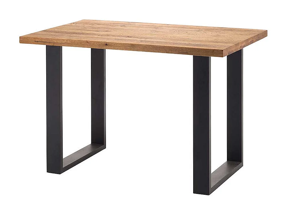 Tresentisch aus Wildeiche Massivholz Stahl Bügelgestell