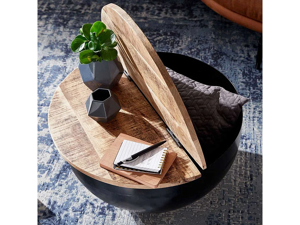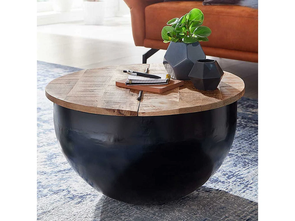 Truhentisch Industriestil aus Mangobaum Massivholz Metall