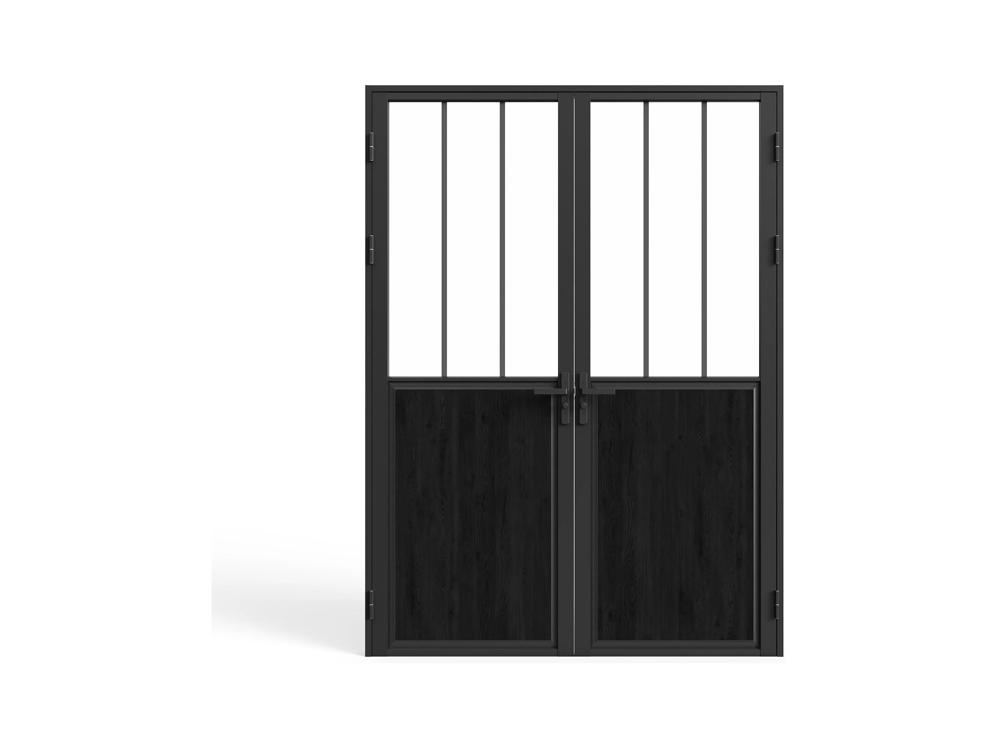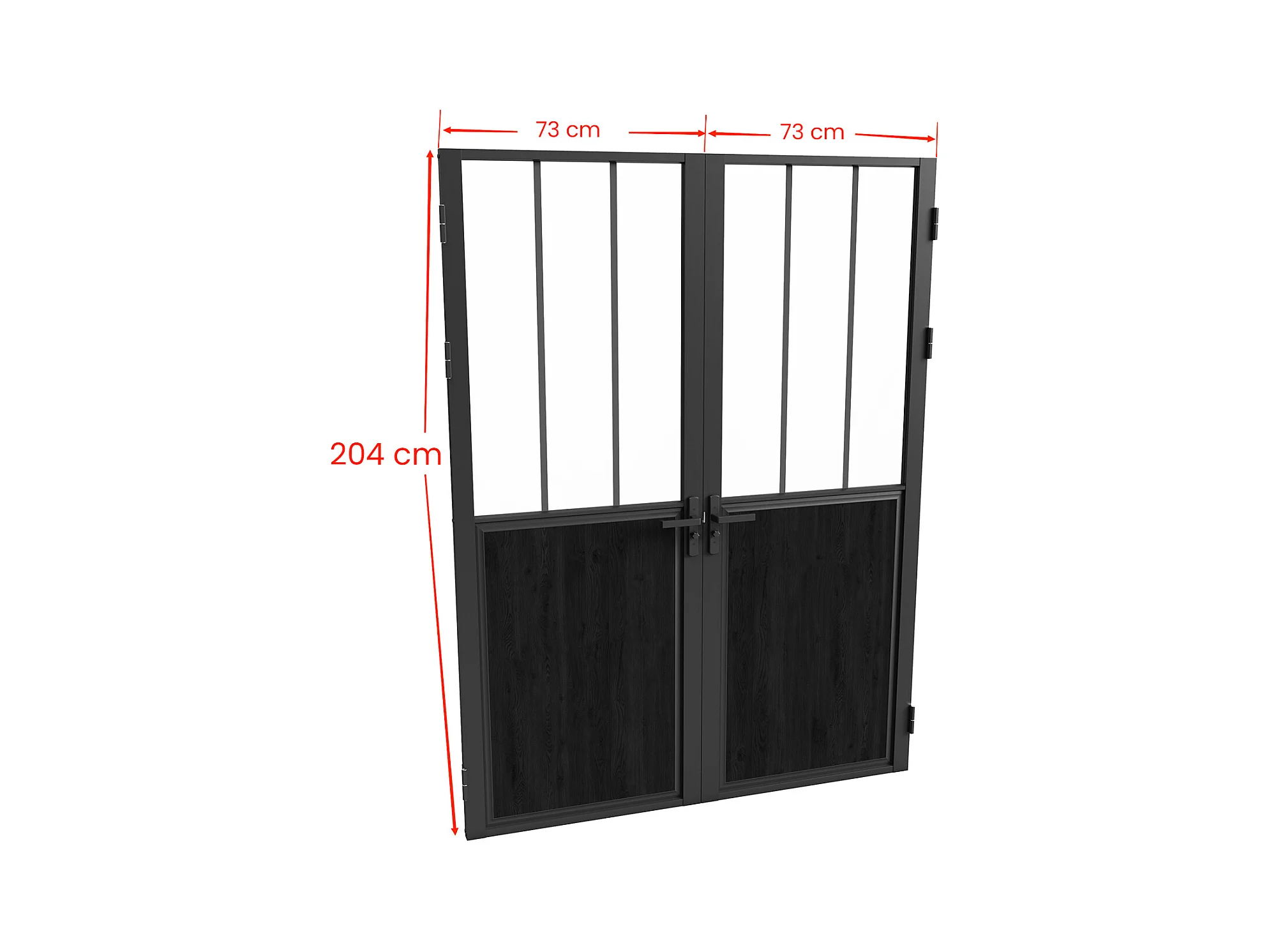 Tür-Set - zwei Flügel - wendbar - Aluminium & Sicherheitsglas - Industrial Style - 204 x 146 cm - Schwarz - ERMELO