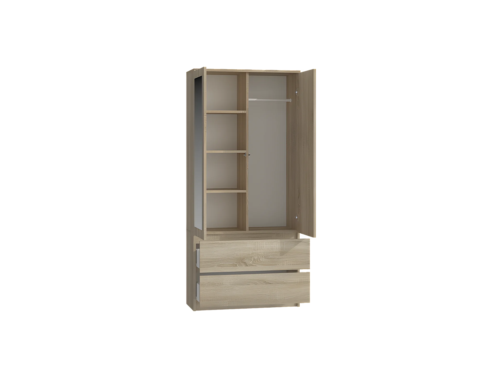TURIN - Schrank 2 Türen mit Spiegel modernen Stil Schlafzimmer - 90x50x180 - 2 Schubladen - Sonoma