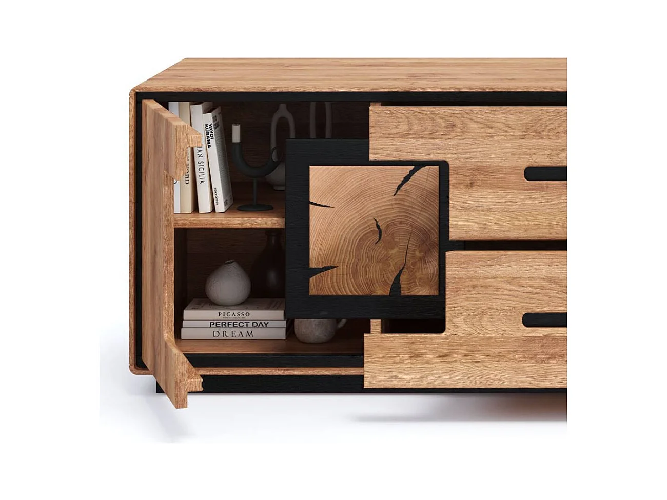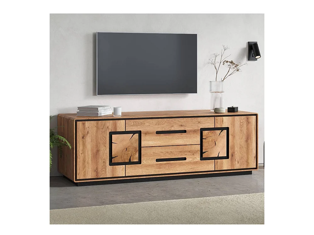 TV Bank Fernsehunterschrank in Wildeichefarben und Schwarz
