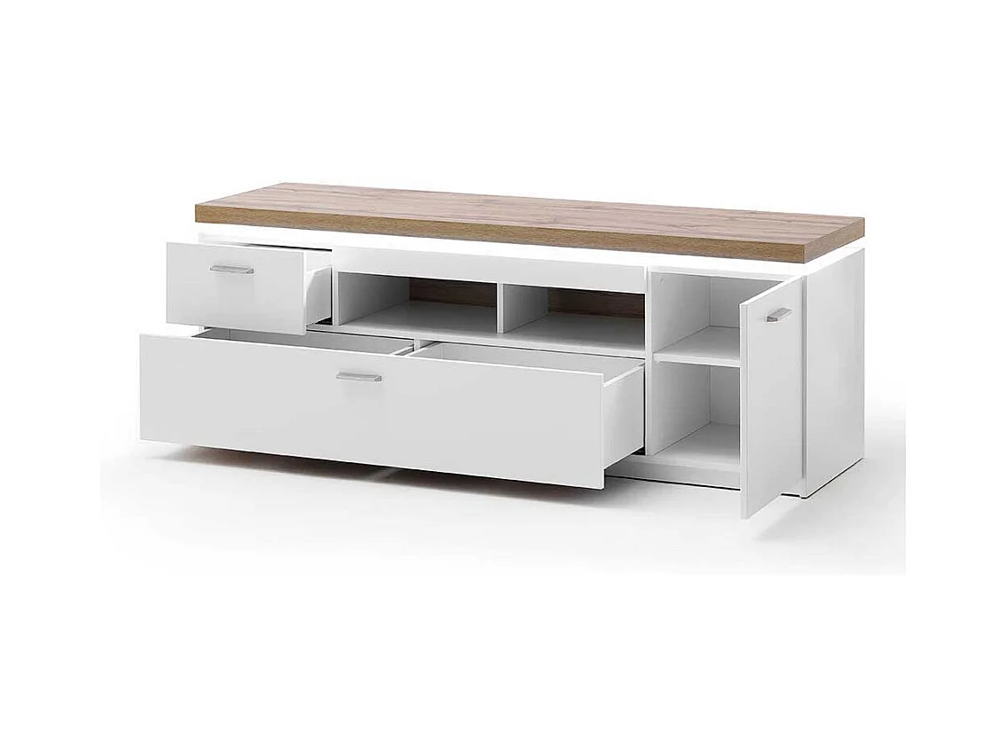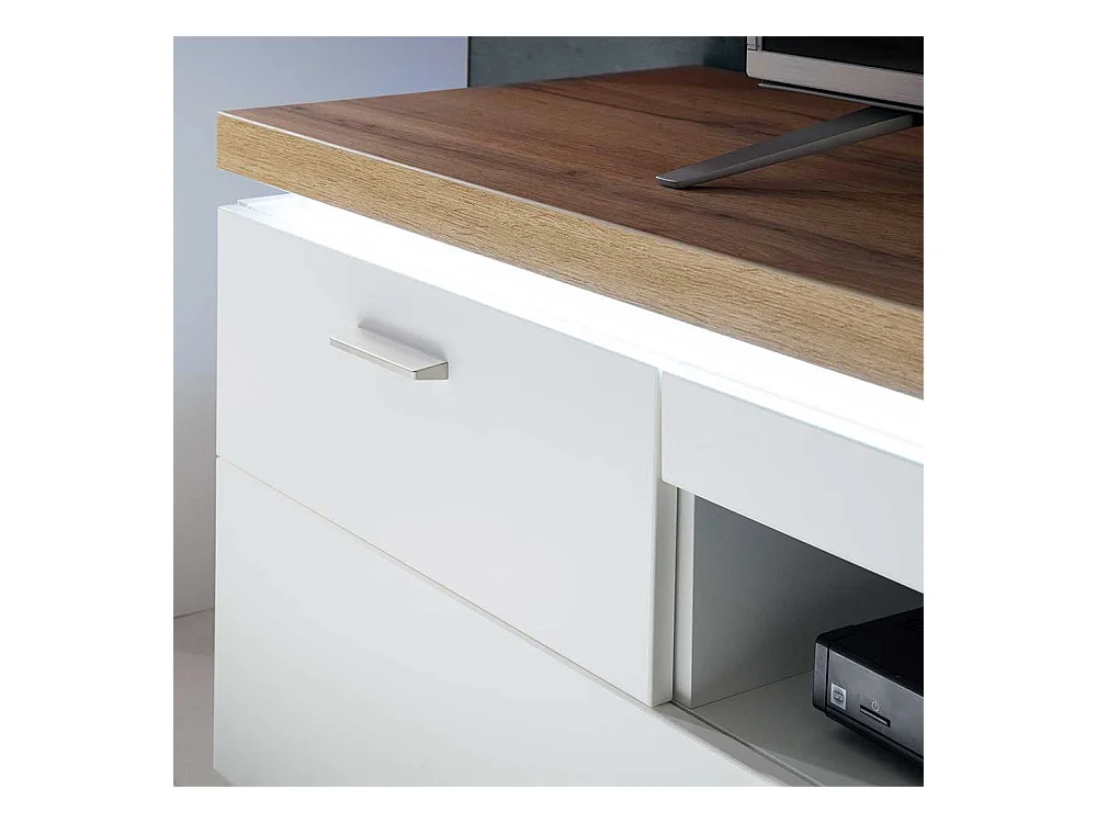 TV Board in Weiß und Wildeiche Optik LED Beleuchtung