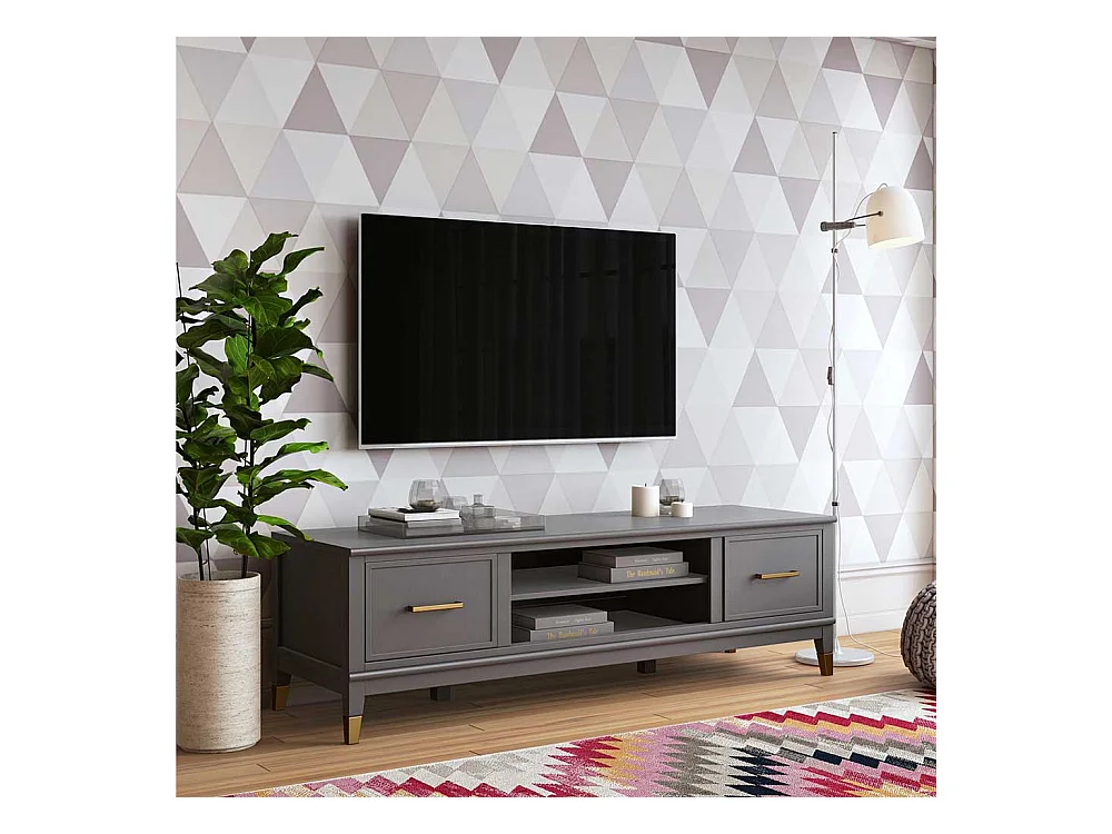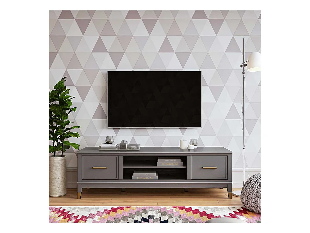 TV Board mit Türen Grau und Goldfarben