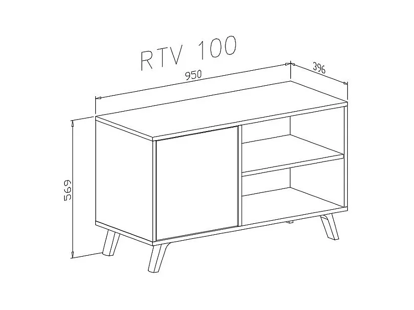TV-Einheit 100 mit linker Tür, Wohnzimmer, Modell WIND, Strukturfarbe ZEMENT, Türfarbe Weiß matt, 95x40x57cm hoch.