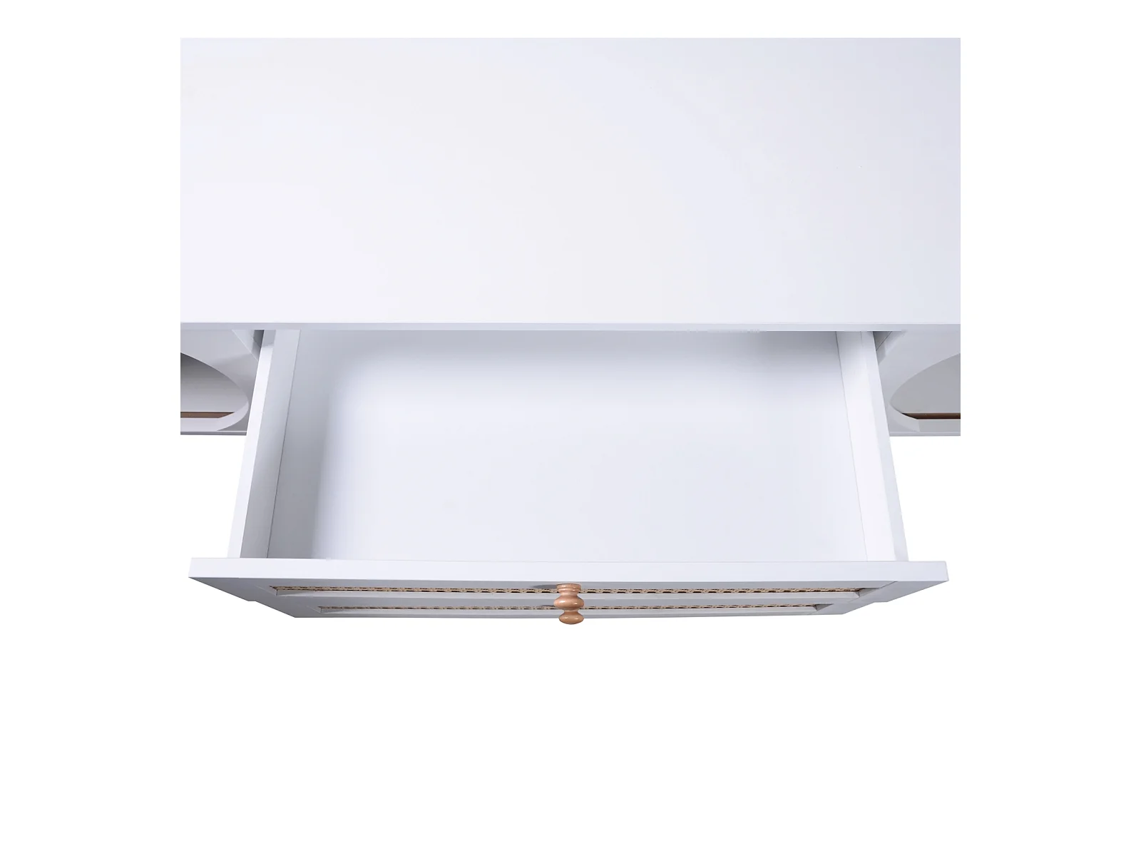 TV-Schrank 170x39,5x46cm - Holz-Fernsehschrank mit Rattan-Türen und Schubladen im Landhausstil zur Aufbewahrung - weiß