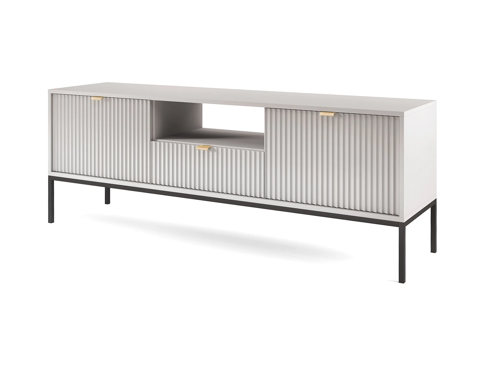 TV-Element Fernsehschrank - 154 cm - Grau mit geriffelten Fronten und schwarzen Metallbeinen - VELLORE