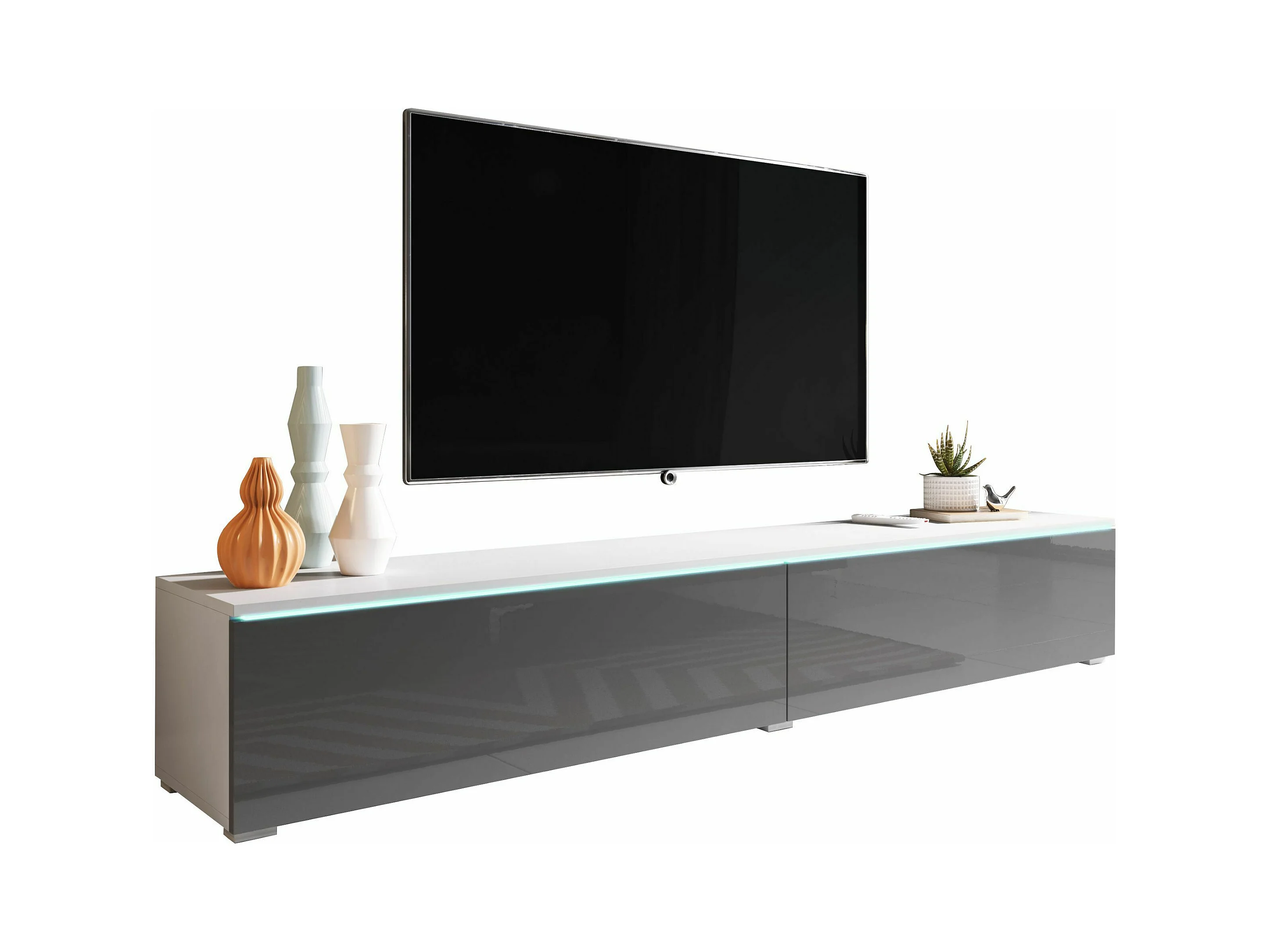 TV-Element stehend / hängend, Weiß Matt / Grau Glanz mit LED, 180 cm - Kane