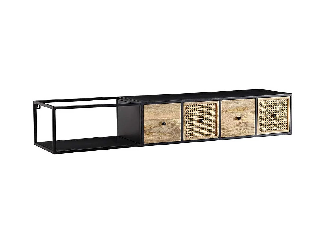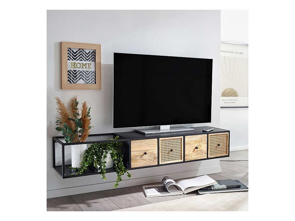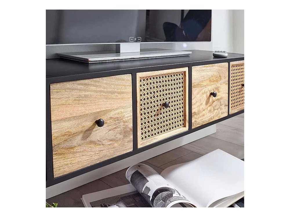 TV Hängeboard 150 cm breit vier Schubladen Rattan Geflecht