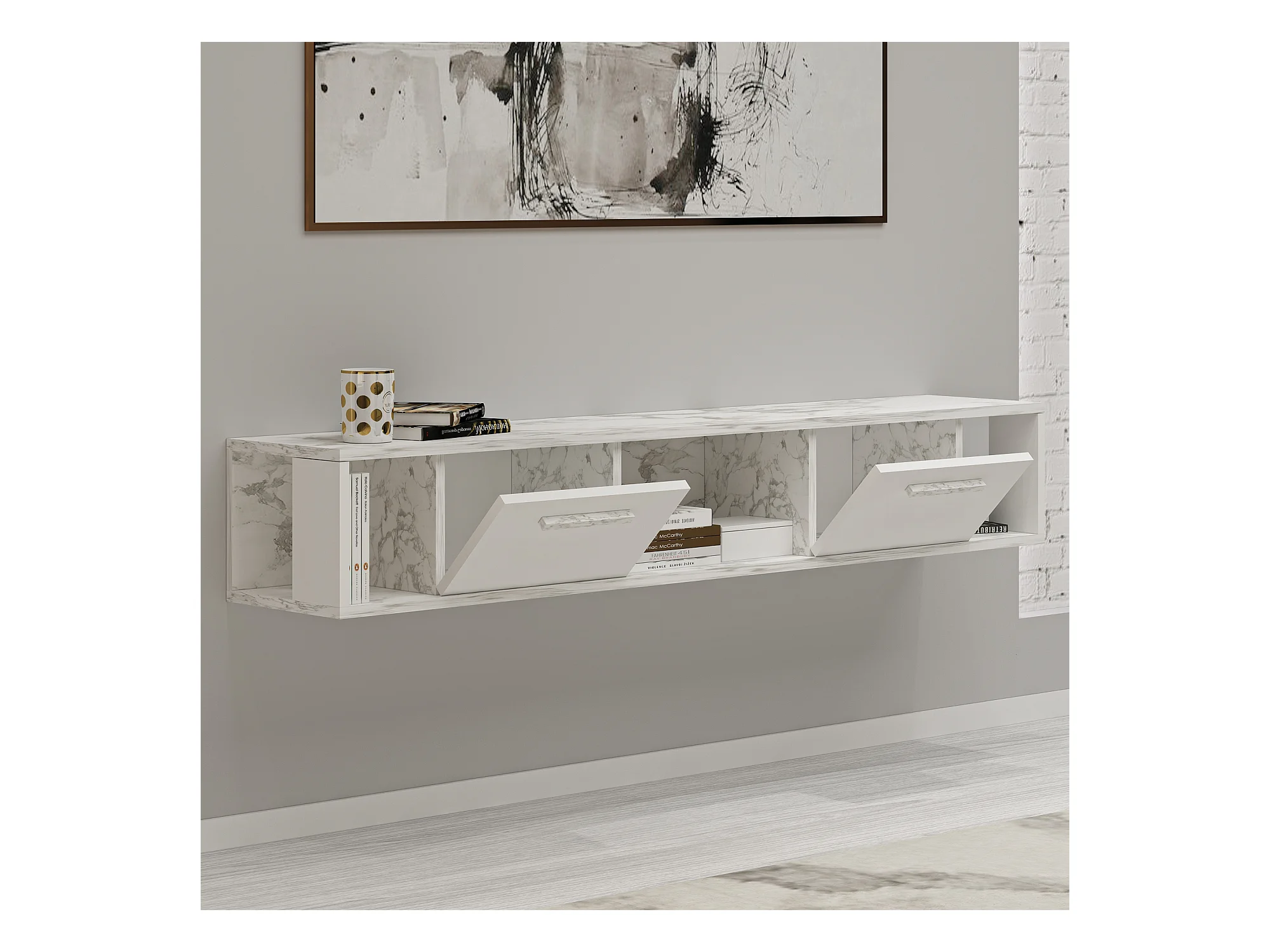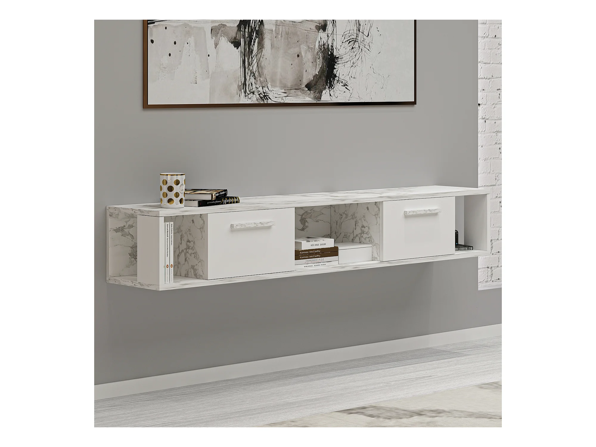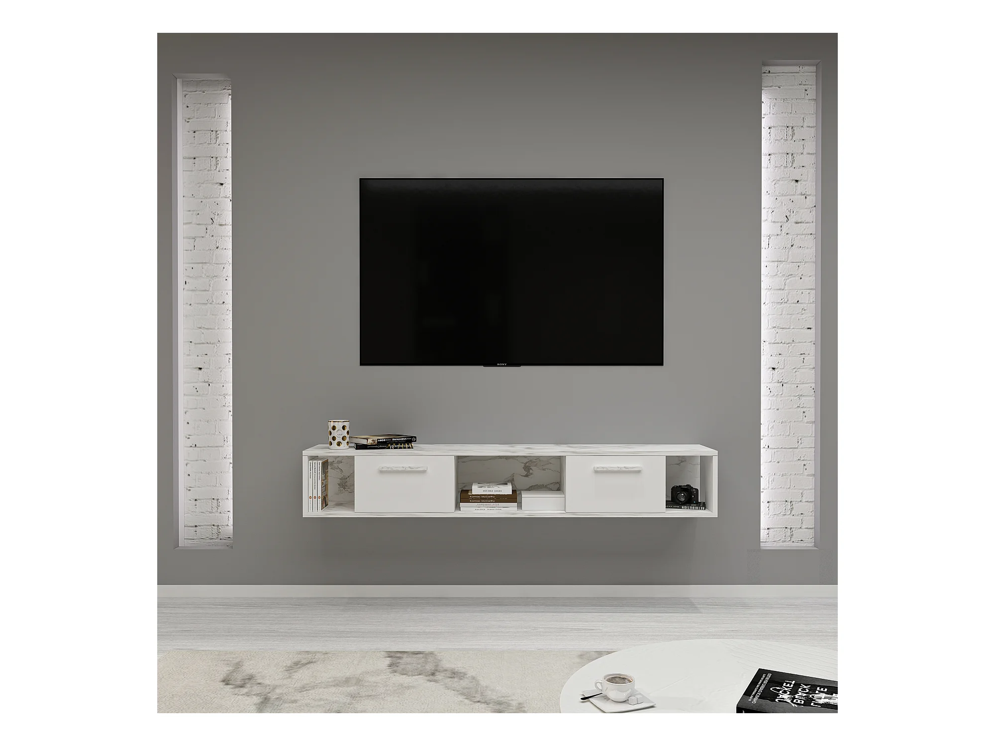 TV Lowboard Aldora Weiß Marmor Optik 9581