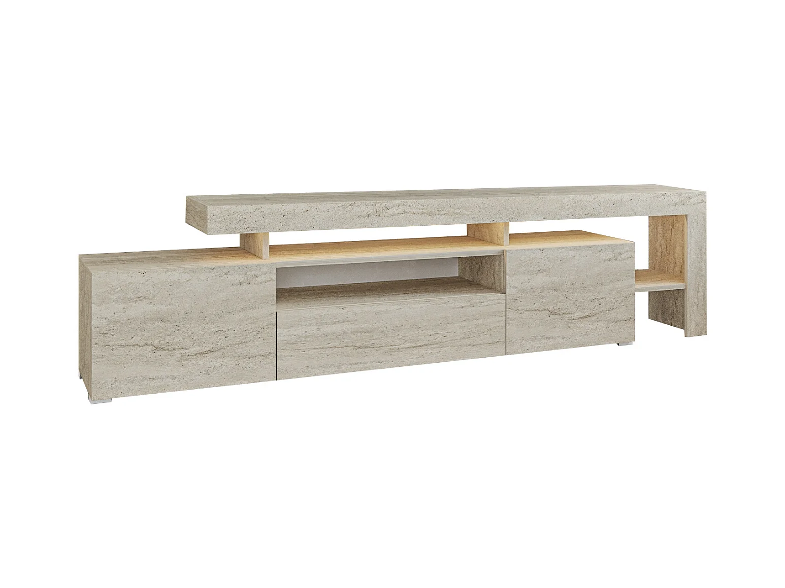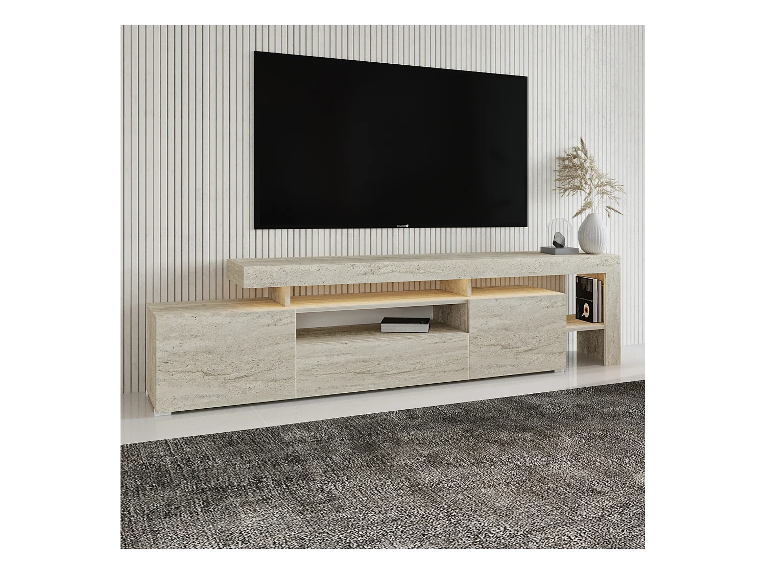 TV Lowboard Beige Granit Optik mit LED-Leuchten