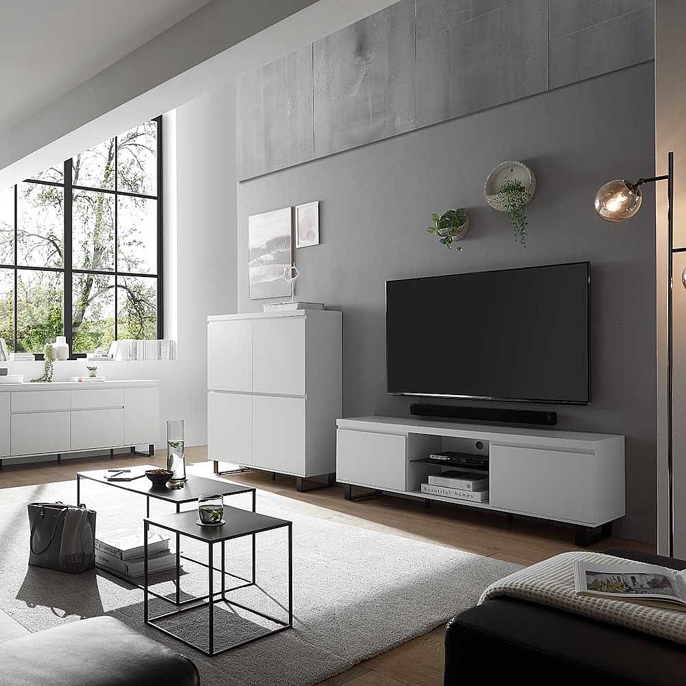 TV Lowboard Fernsehtisch in Weiß mit Türen