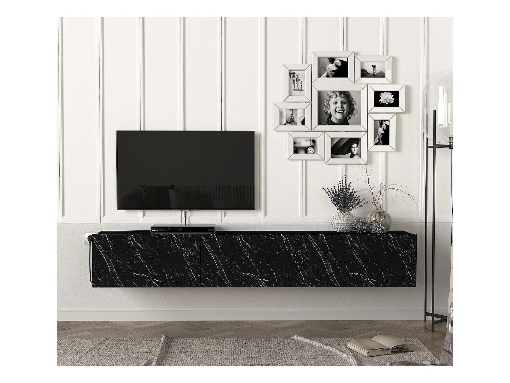 TV Lowboard Hängend Damla Schwarz Marmor (Marmor Optik)