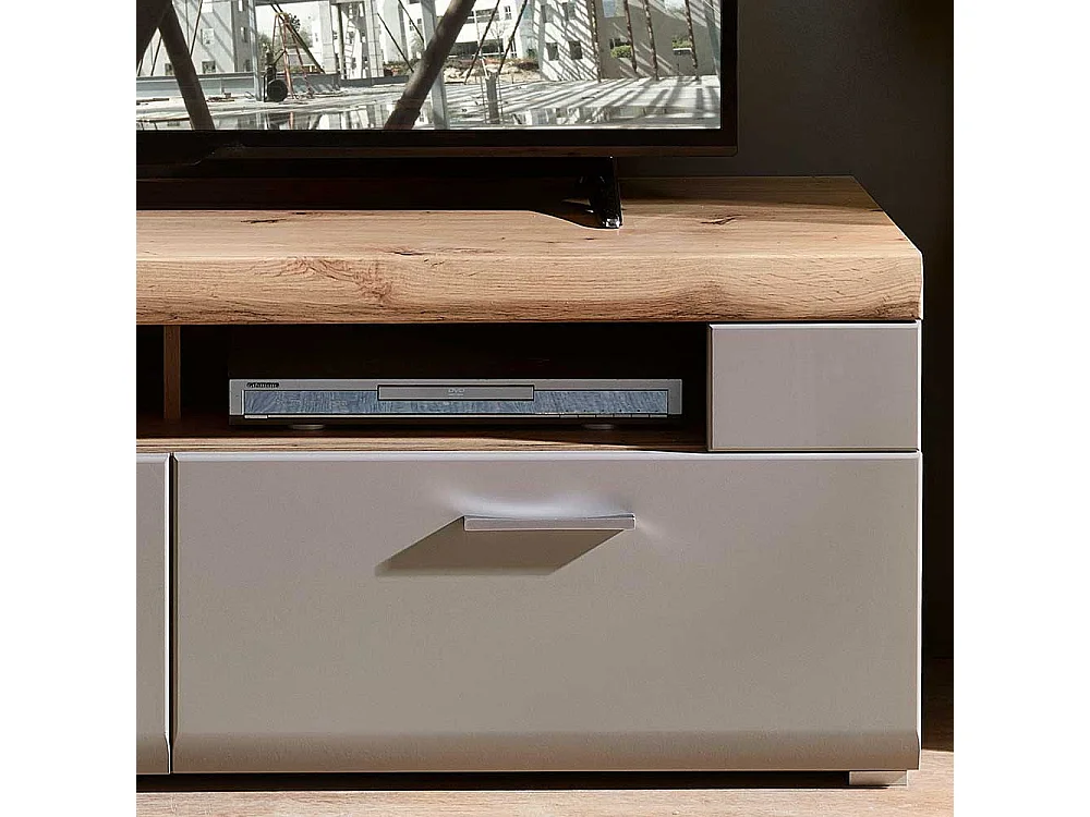TV Lowboard in Grau und Eiche Optik 140 cm breit