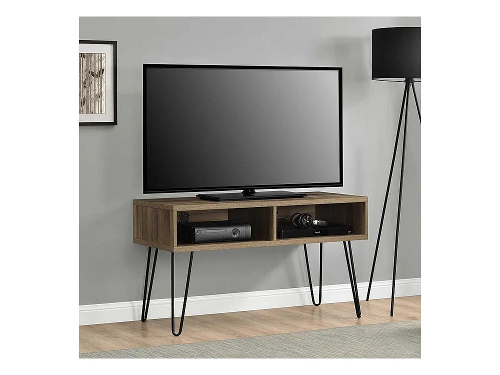 TV Lowboard mit Metall Hairpin Gestell Walnussfarben