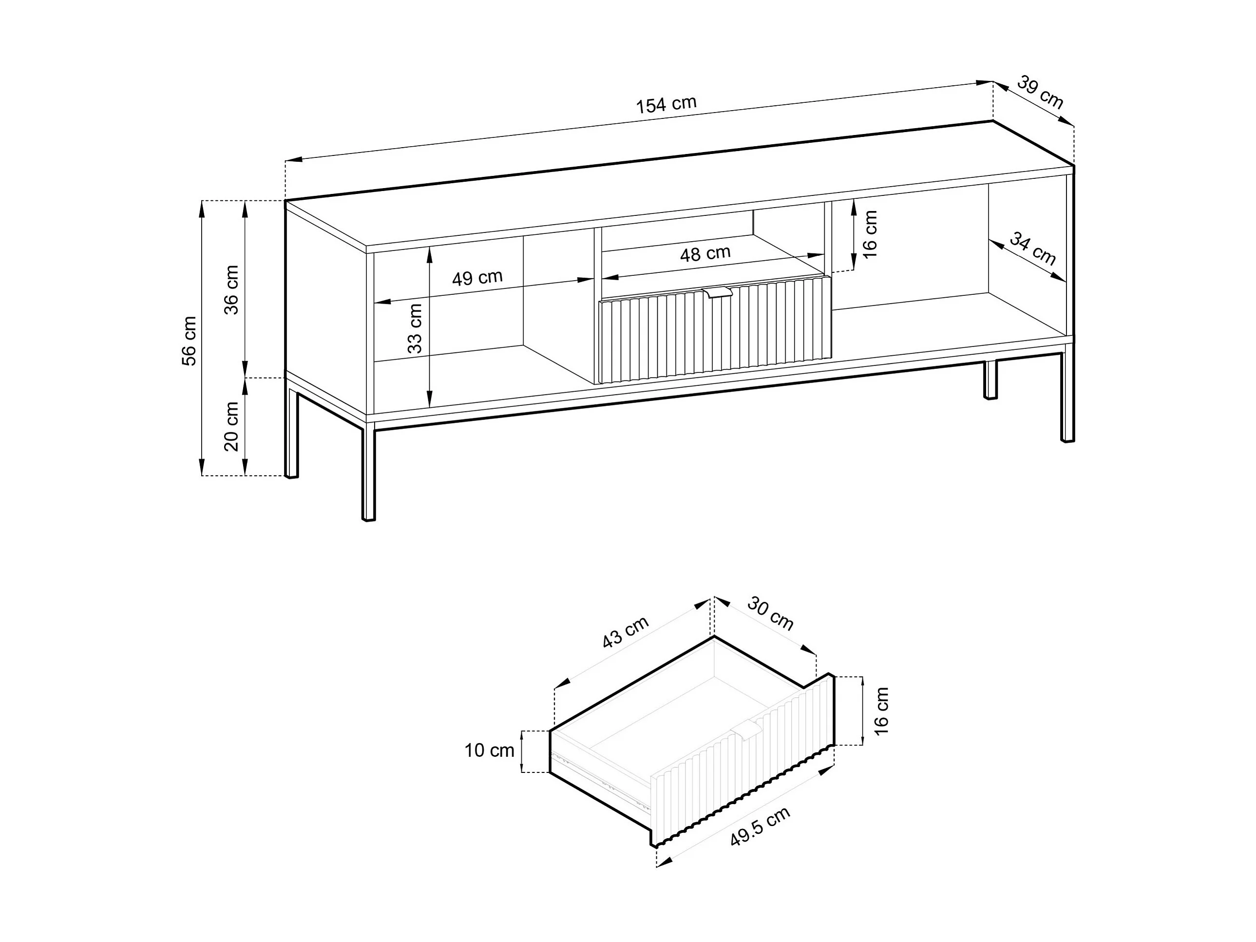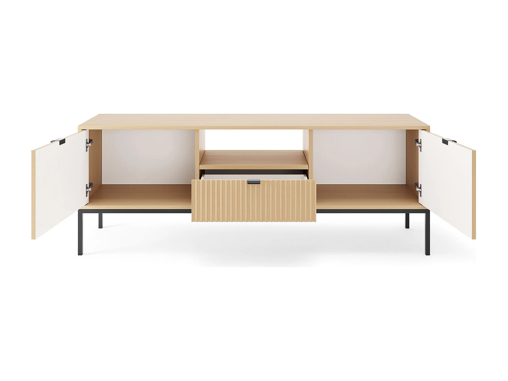 TV-Lowboard mit Schublade und schwarzem Gestell – Eiche Vicenza Optik – 154 cm – VELLORE