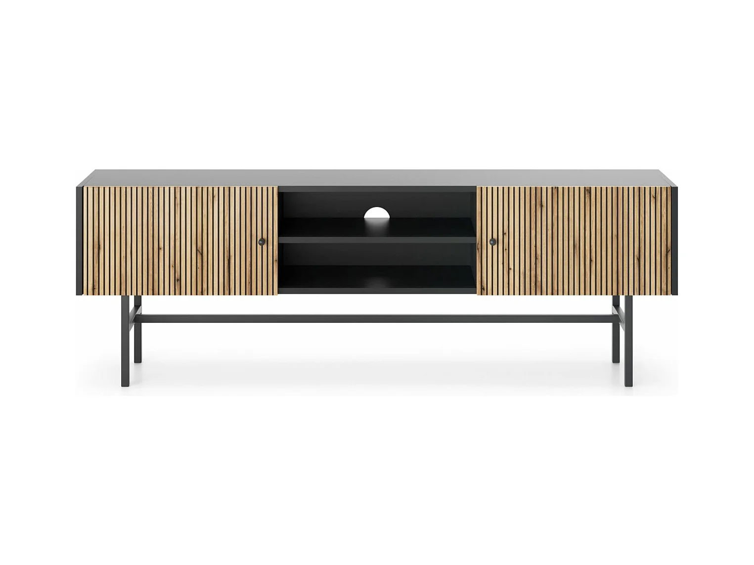 TV-Lowboard - Schwarz / Holzoptik Eiche mit Metallbeinen - 155 cm - DIVENOS