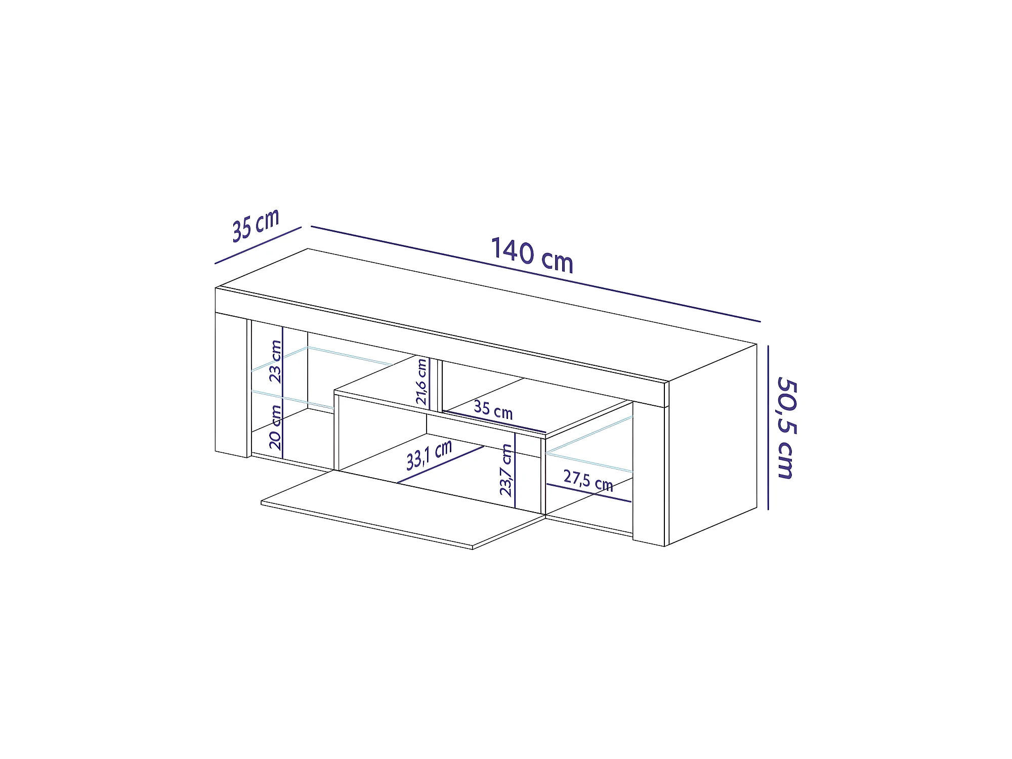 TV-Lowboard stehend in Lancaster Eiche mit Klappe, 140 cm - Bianko