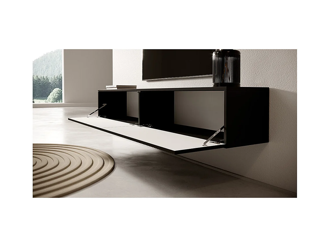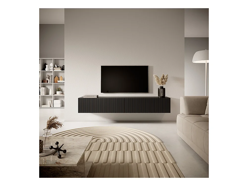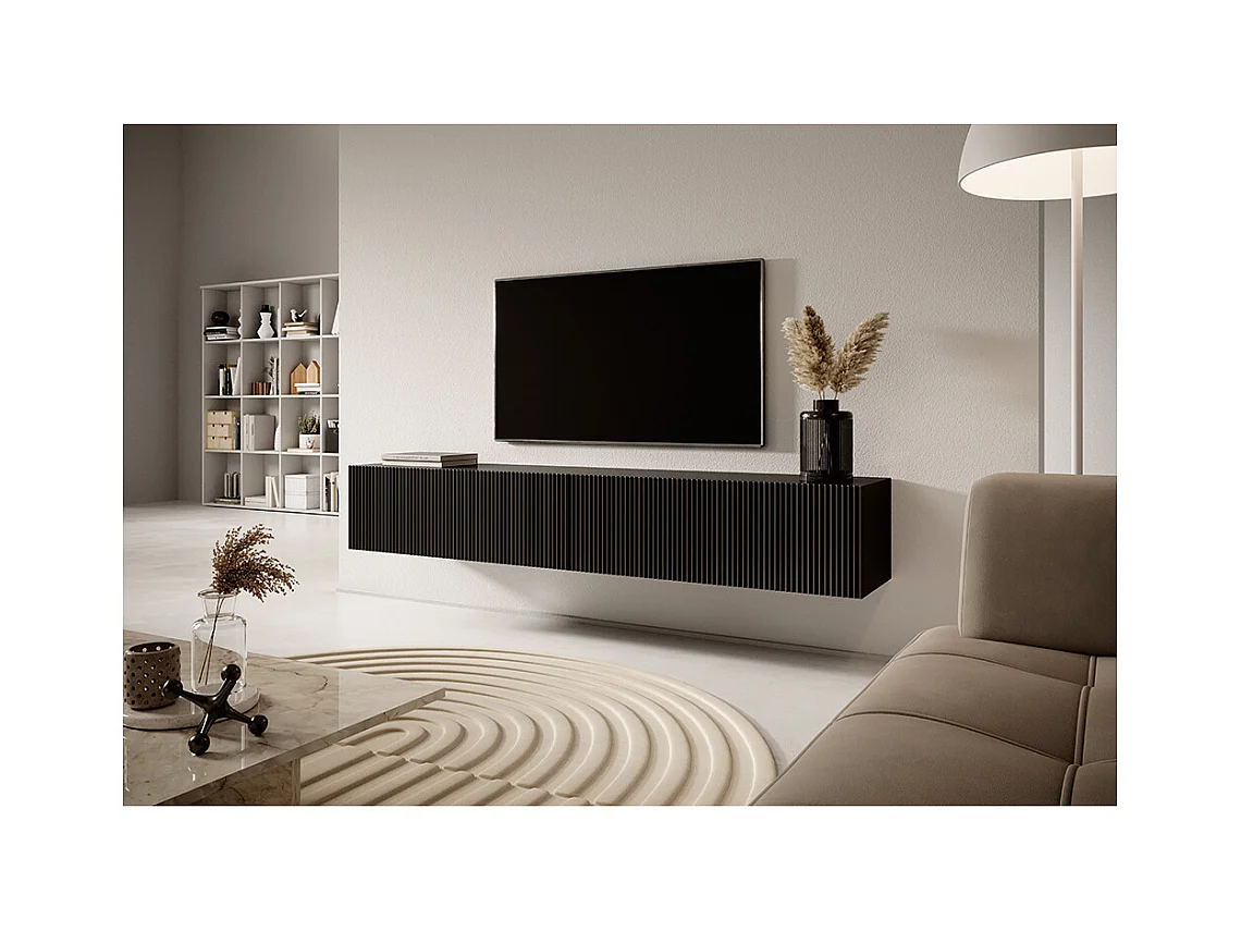 Schwarzer TV-Schrank von 175 cm mit gefräster Front VELDIO
