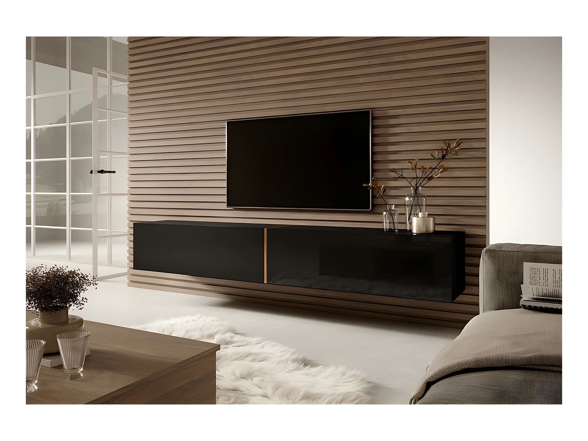 TV-Lowboard TV-Möbel hängend - 200 cm (Schwarz mit goldenem Einsatz) - Bisira