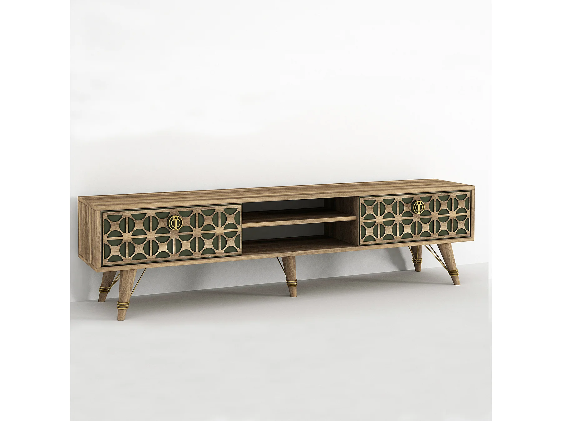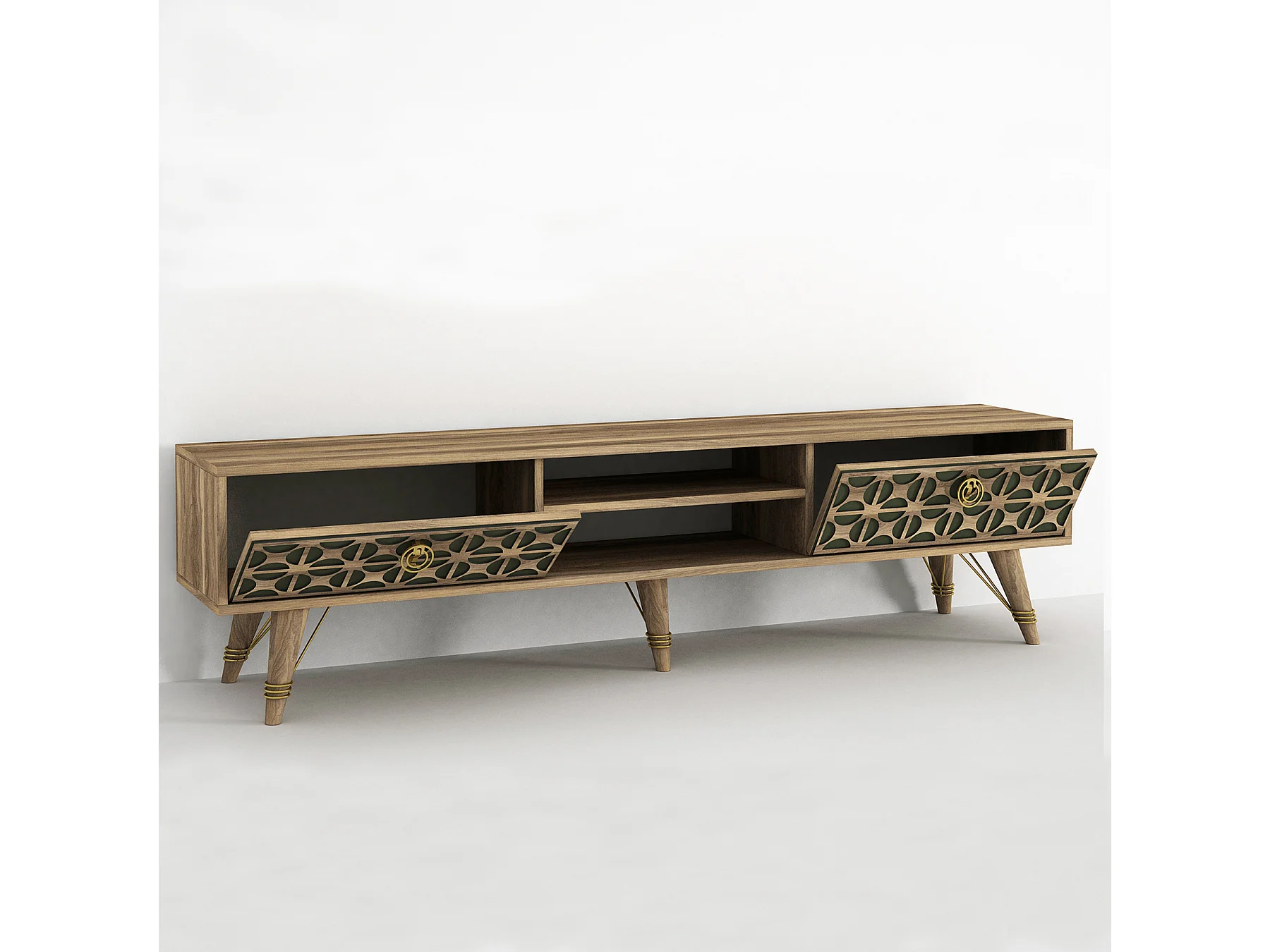 TV Lowboard Valente Walnuss Dunkelgrün