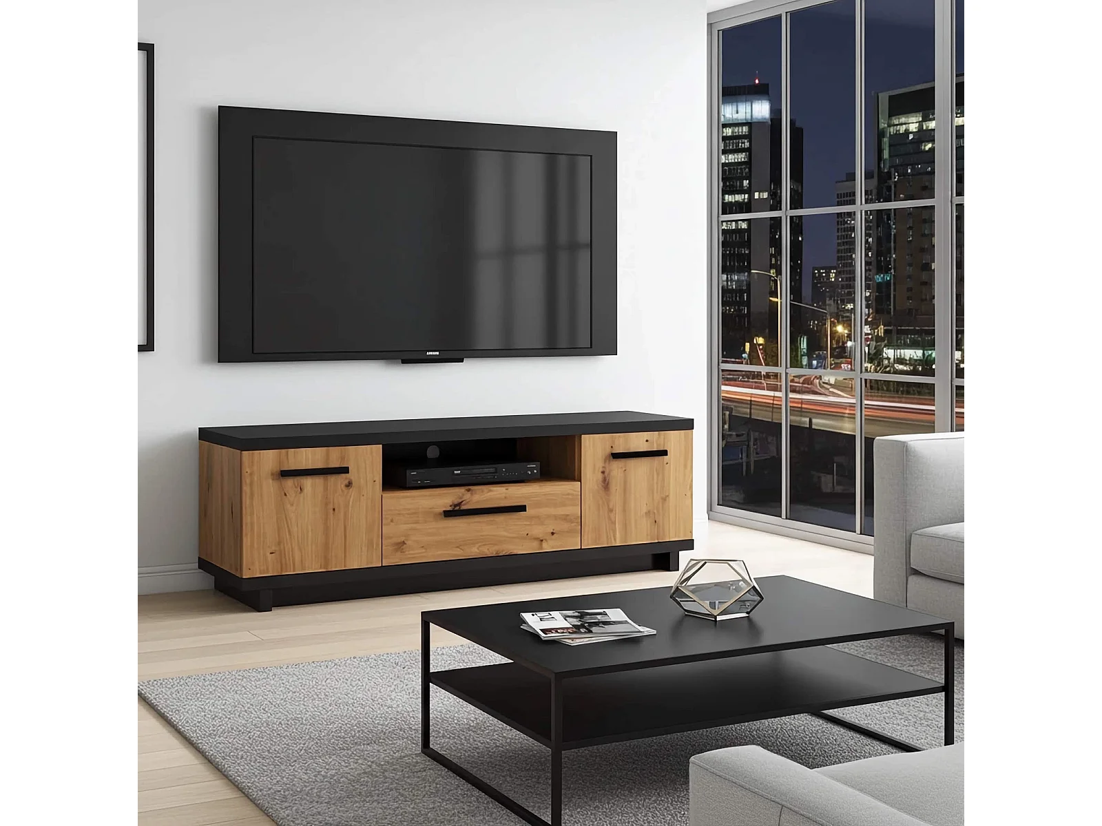 TV-Lowboard Zonda - 135 cm - Eiche Artisan / Anthrazit