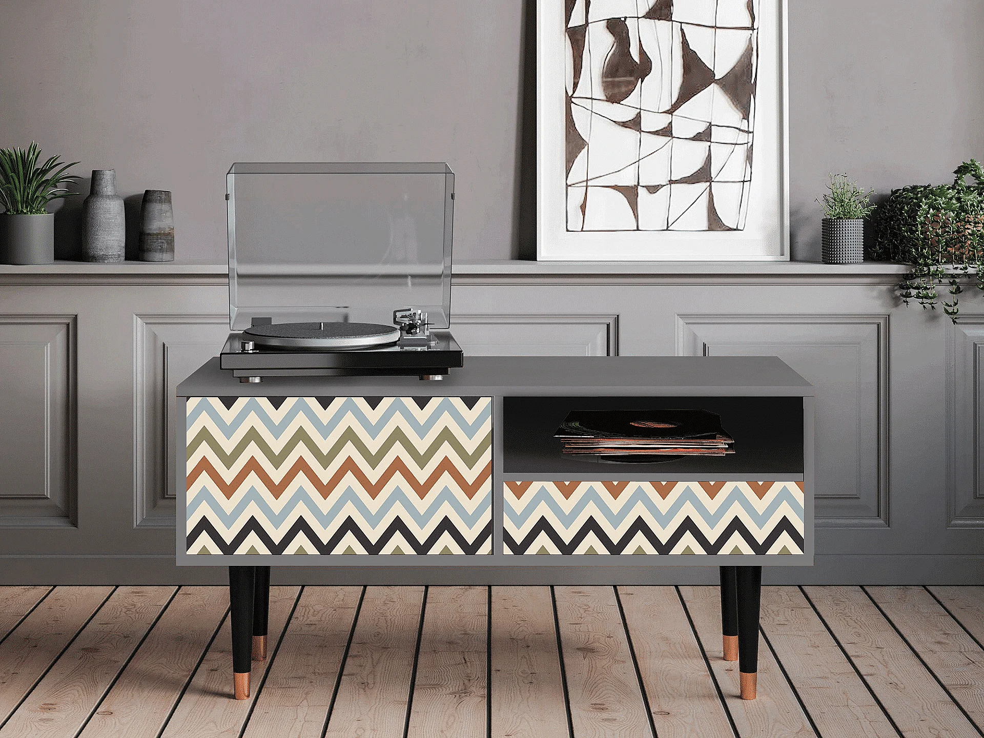 TV-Möbel - 115х59х48 cm - T3 - Bright Ripple, Grau