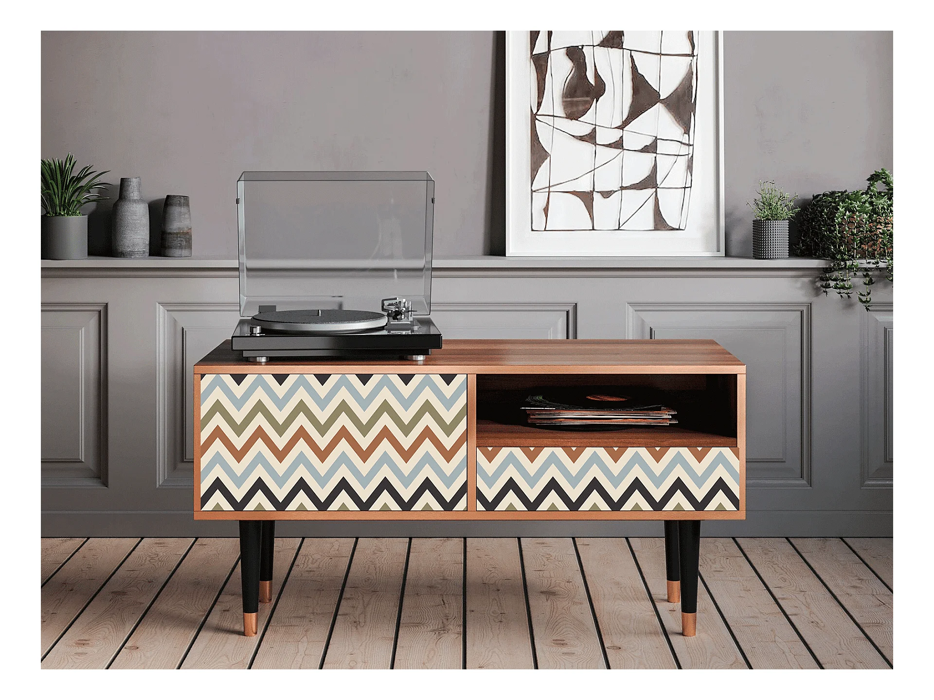 TV-Möbel - 115х59х48 cm - T3 - Bright Ripple, Walnuss