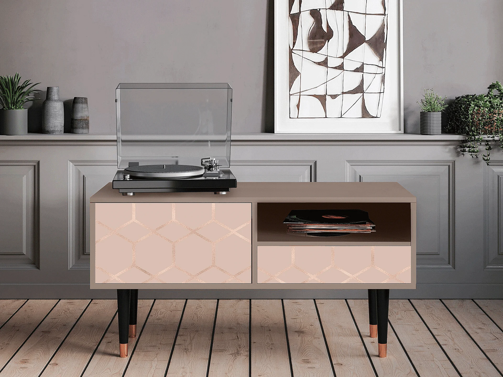 TV-Möbel - 115х59х48 cm - T3 - Rose Honeycomb, Latte
