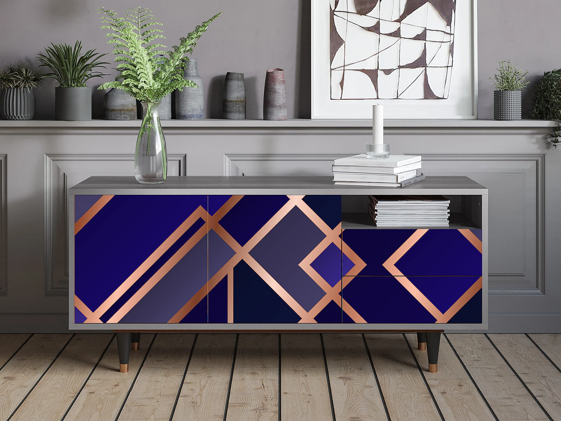 TV-Möbel - 125х56х41 cm - T7 - Aquamarine Getsby, Grau