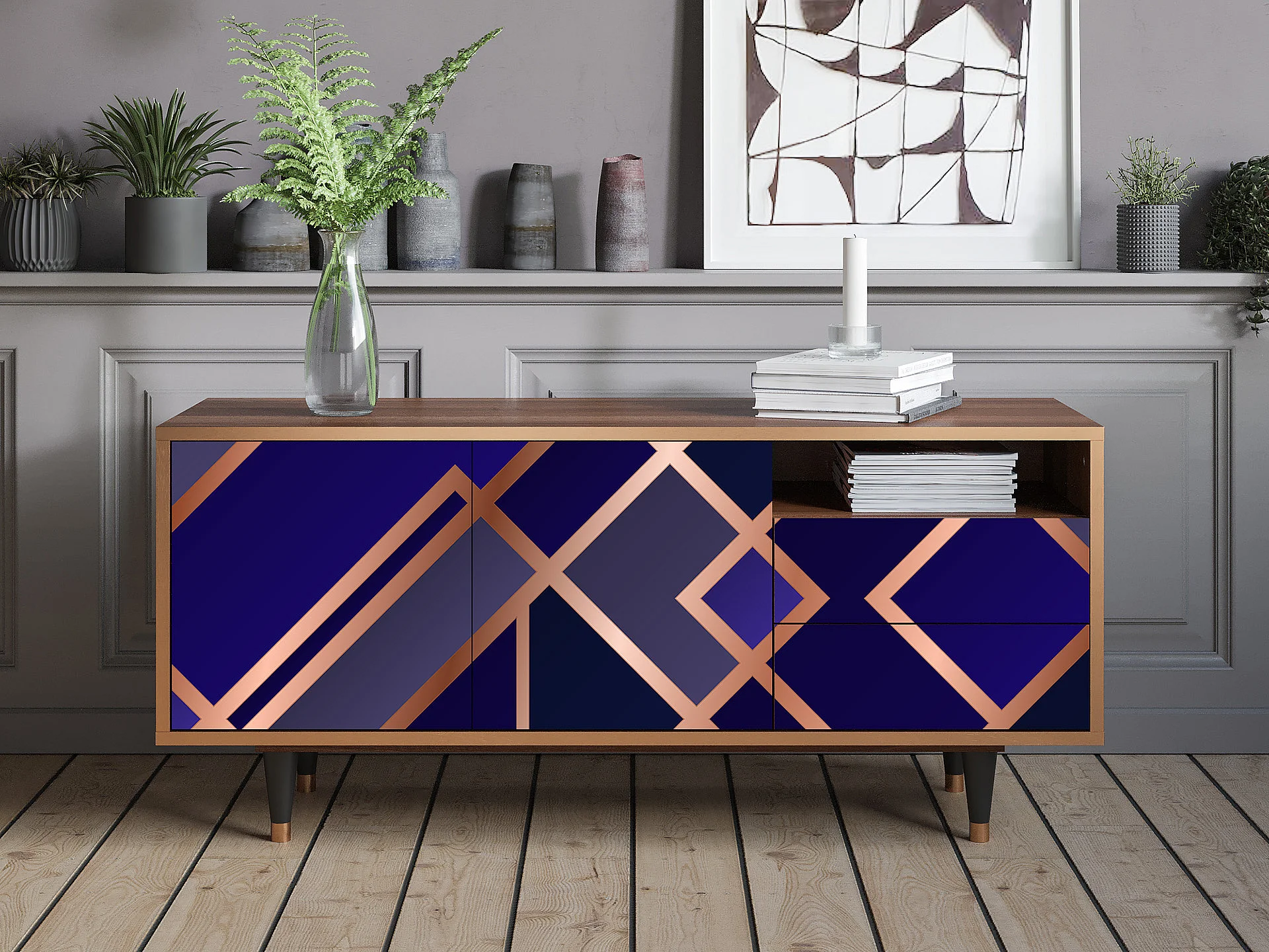 TV-Möbel - 125х56х41 cm - T7 - Aquamarine Getsby, Walnuss