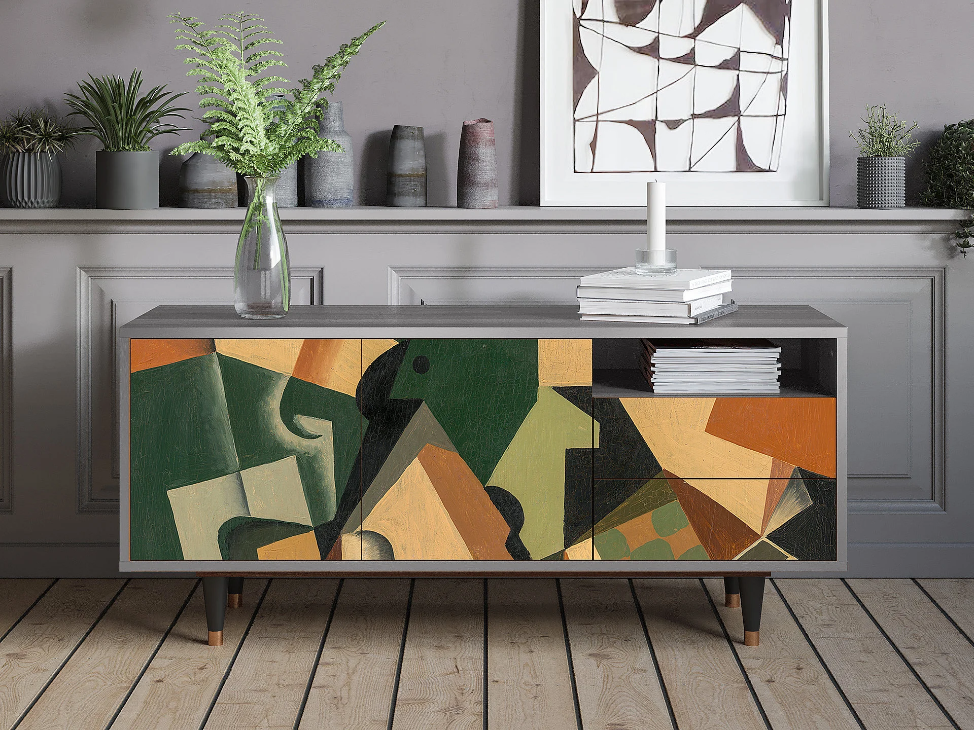 TV-Möbel - 125х56х41 cm - T7 - Glass and Checkerboard, Grau