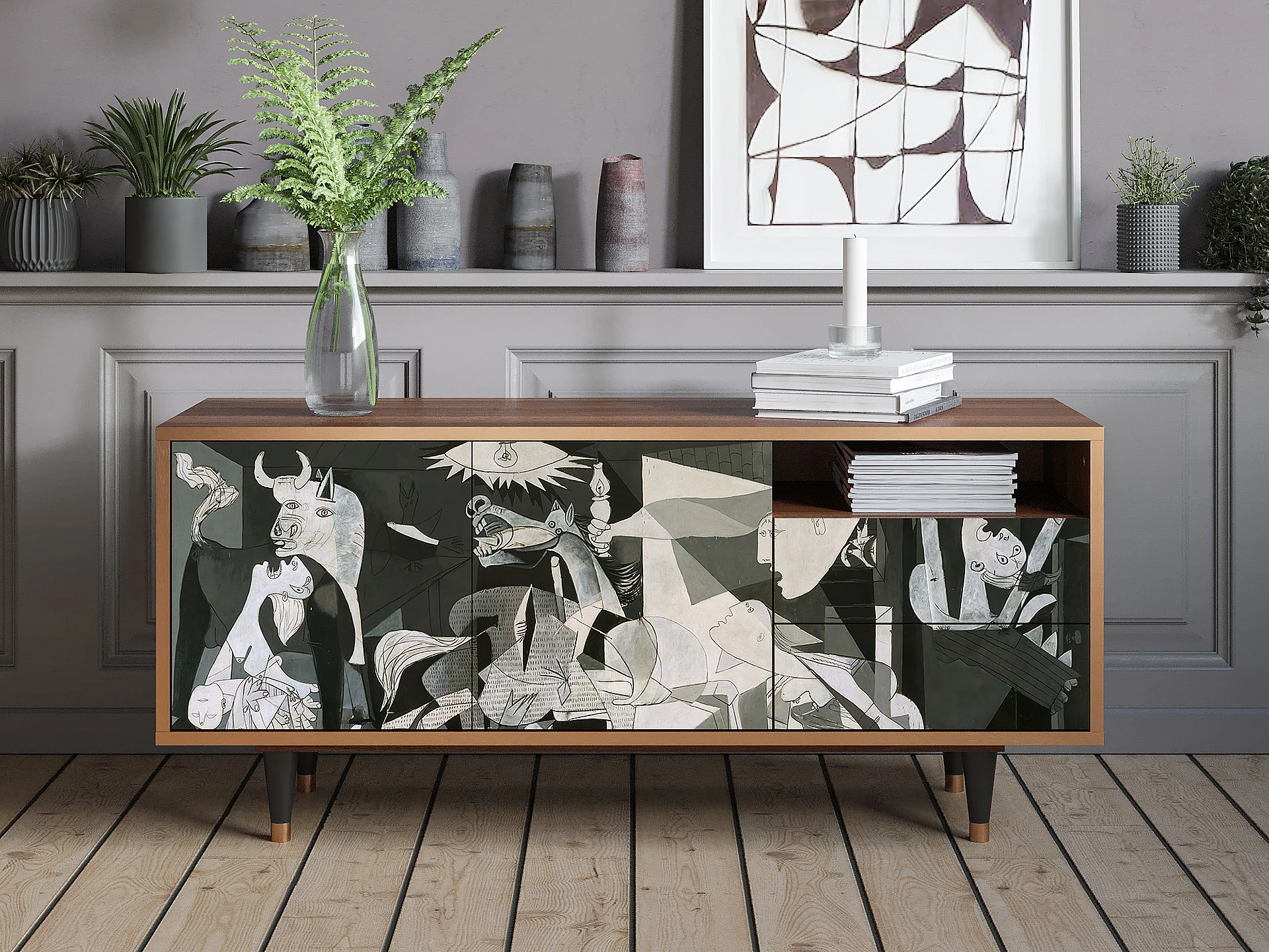 TV-Möbel - 125х56х41 cm - T7 - Guernica by Picasso, Walnuss