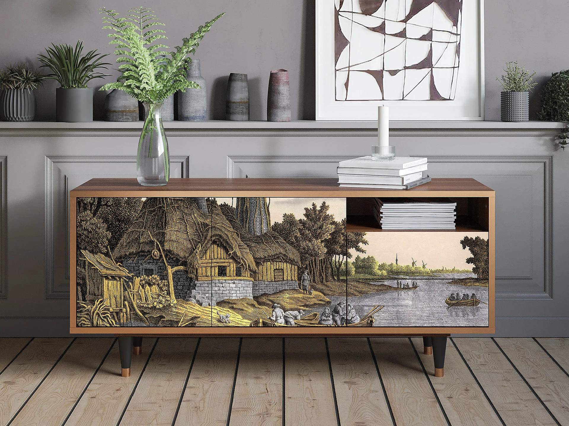 TV-Möbel - 125х56х41 cm - T7 - Mill along a River, Walnuss