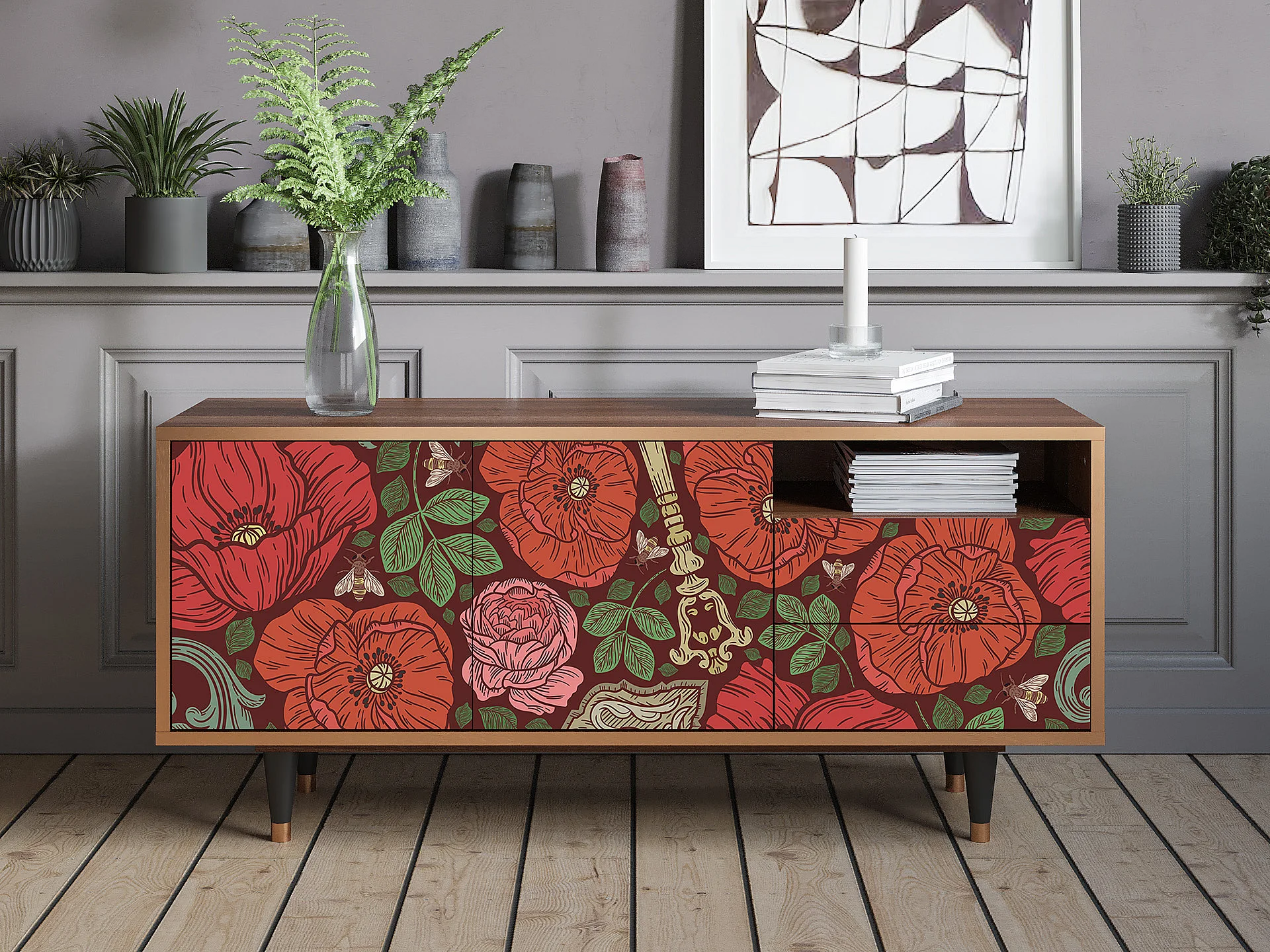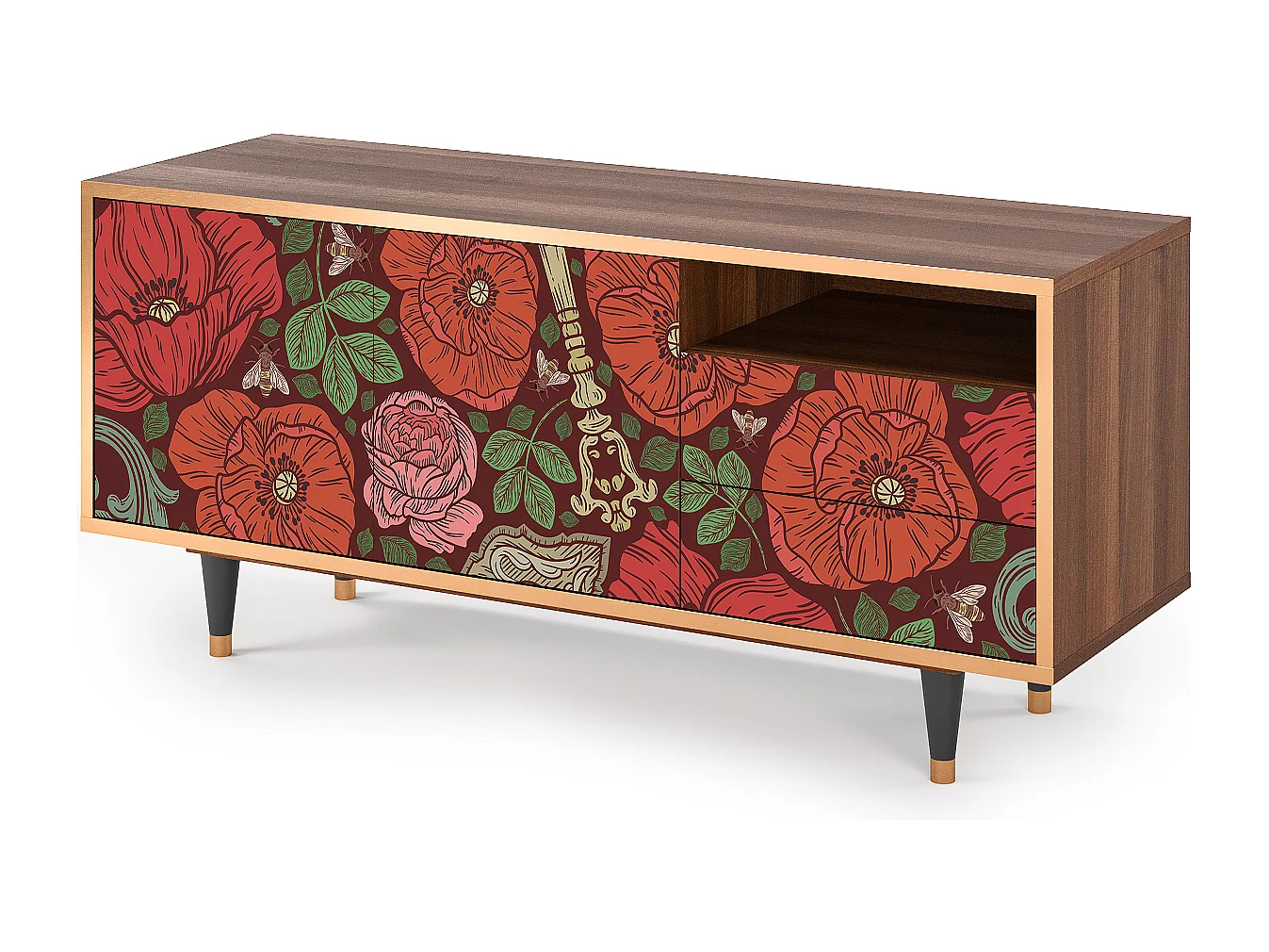 TV-Möbel - 125х56х41 cm - T7 - Poppy Garden, Walnuss